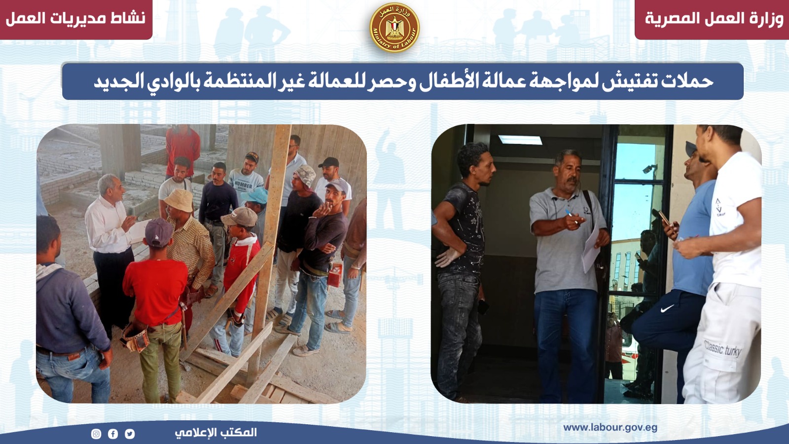 2-حملات تفتيش لمواجهة عمالة الأطفال وحصر للعمالة غير المنتظمة بالوادي الجديد