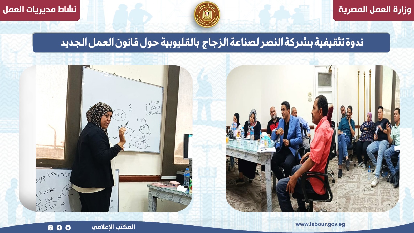 6ـ ندوة تثقيفية بشركة النصر لصناعة الزجاج حول قانون العمل الجديد