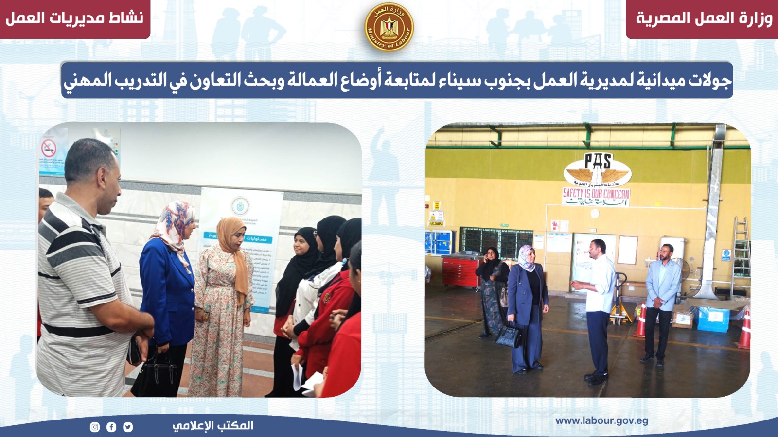 ٤- جولات ميدانية لمديرية العمل بجنوب سيناء لمتابعة أوضاع العمالة وبحث التعاون في التدريب المهني