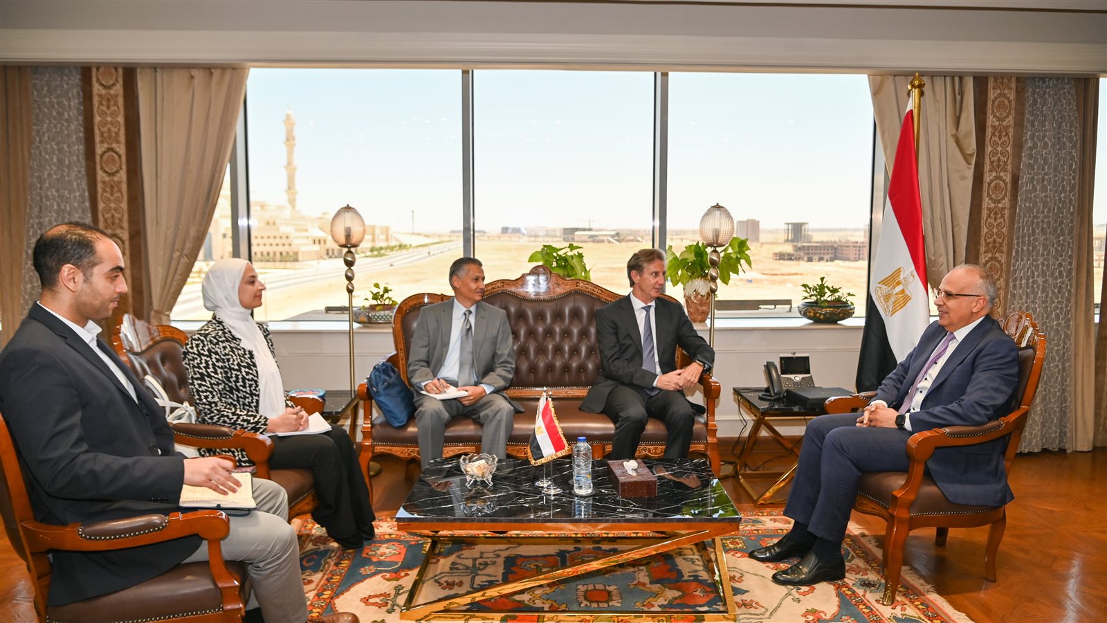 التقى الدكتور هاني سويلم وزير الموارد المائية والرى، بـ "إليساندرو فراكاسيتي" الممثل المقيم لبرنامج الأمم المتحدة الإنمائي بمصر UNDP، بمناسبة قرب انتهاء فترة عمل فراكاسيتي كممثل مقيم للبرنامج في مصر، وقد تم خلال اللقاء مناقشة موقف الأنشطة الجارية للمشروعات الممولة من "صندوق المناخ الأخضر" في مصر، وذلك بحضور الدكتور محمد بيومي مساعد الممثل المقيم ومدير قسم البيئة في برنامج الأمم المتحدة الإنمائي بمصر، والمهندس أحمد عادل معاون الوزير للتعاون الدولي .