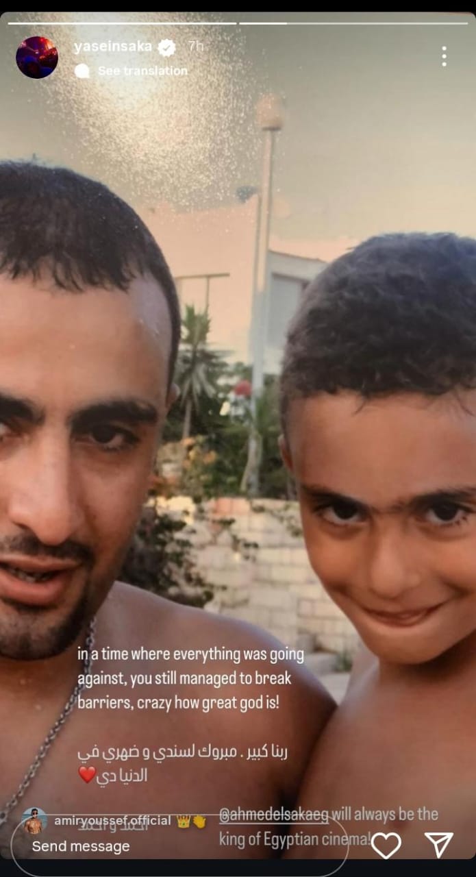 ونشر ياسين السقا صورة تجمعه بوالده أثناء طفولته، من خلال حسابه الرسمي عبر موقع تبادل الصور والفيديوهات القصيرة “إنستجرام”، عبر خاصية استوري، وكتب: “في وقت كان كل شئ يسير ضده، كنت لا تزال قادرًا على كسر الحواجز.. ربنا كبير، مبروك لـ سندي وضهري في الدينا دي”.