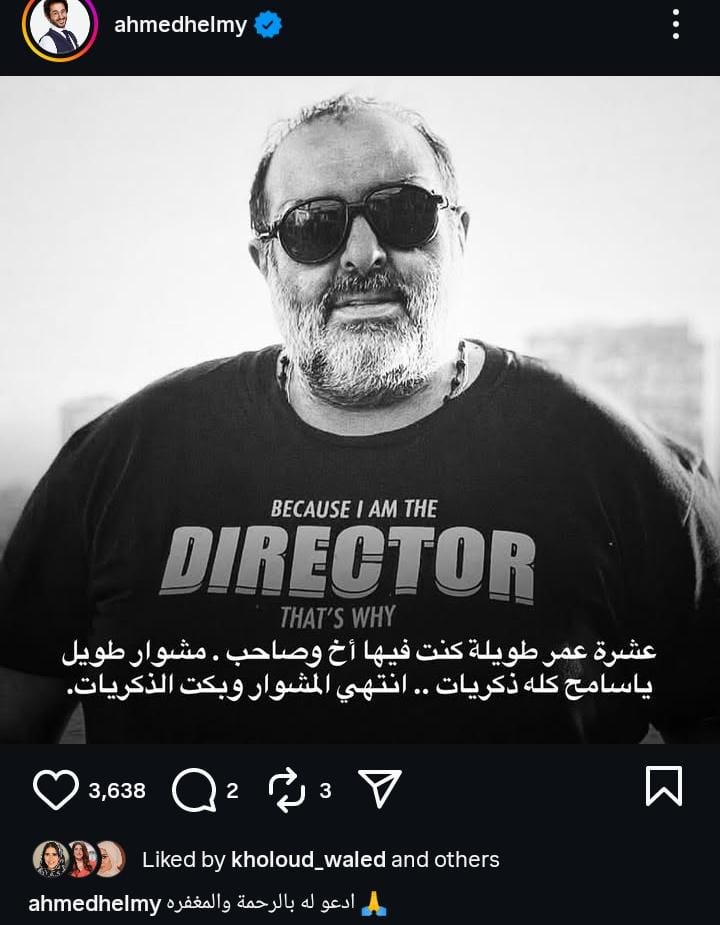 "انتهى المشوار وبكت الذكريات"… أحمد حلمي يودّع المخرج سامح عبد العزيز بكلمات مؤثرة