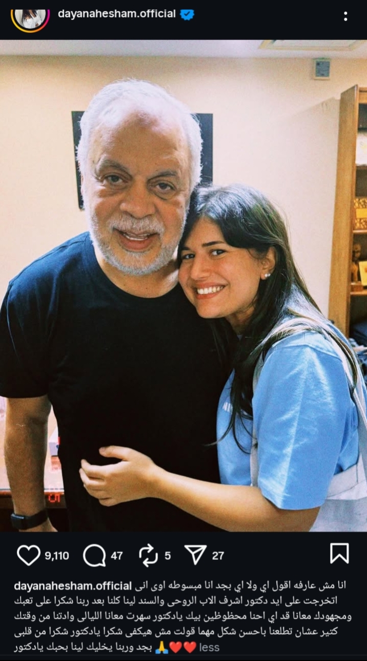 أضافت: "سهرت معانا الليالي، واديتنا من وقتك كتير علشان تطلعنا بأحسن شكل، مهما قلت مش هيكفي.. شكرًا يا دكتور.. شكراً من قلبي بجد، وربنا يخليك لينا، بحبك يا دكتور ".