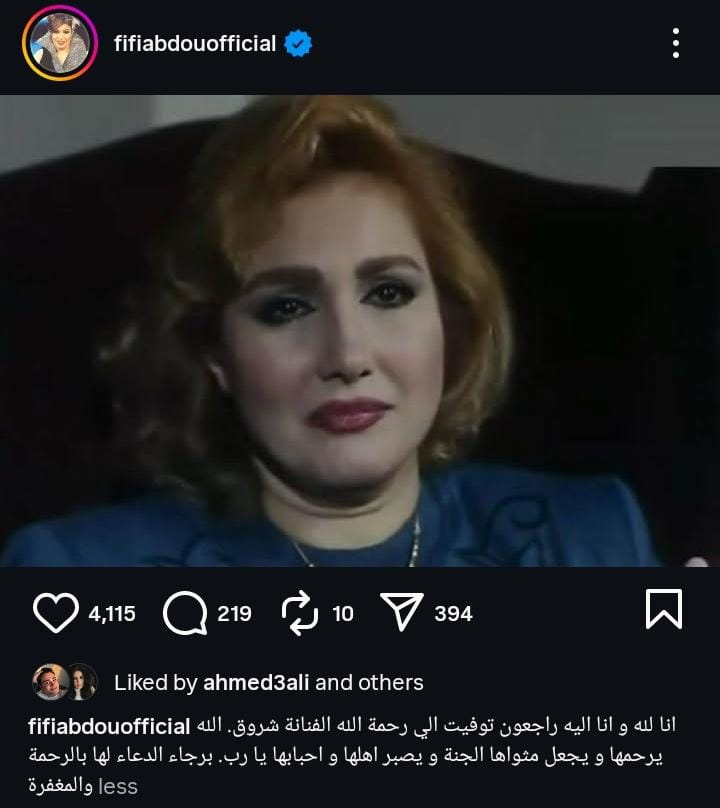 وحرص عدد من النجوم على نعي الفنانة شروق أبرزهم الفنانة فيفي عبده، حيث نشرت صورة لها من خلال حسابها الرسمي عبر موقع تبادل الصور والفديوهات القصيرة إنستجرام، وكتبت: "انا لله وانا اليه راجعون، توفيت إلى رحمة الله الفنانة شروق.. الله يرحمها ويجعل مثواها الجنة ويصبر اهلها واحبابها يارب.. برجاء الدعاء لها بالرحمة والمغفرة".