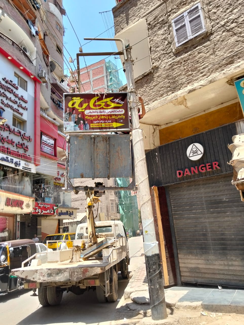 وشدد المحافظ على اتخاذ الإجراءات القانونية حيال المتقاعسين والمخالفين للقانون والقرارات الصادرة في هذا الشأن دون تهاون وذلك لمواجهة أي مخالفات أو اشغالات تضر بالصالح العام للمواطن والدولة معاً مشيراً إلى استمرار تلك الحملات بشكل دوري ومفاجئ بكافة الأحياء والمراكز لإزالة كافة الإعلانات المخالفة لمنع استغلال المساحات الإعلانية دون وجه حق.