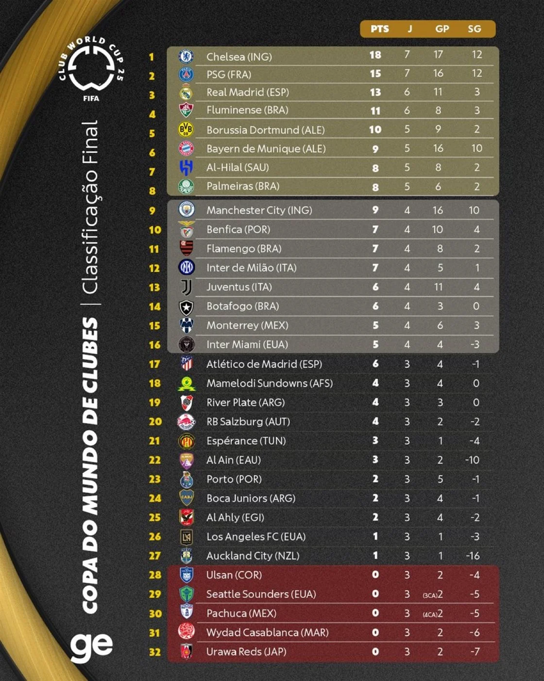 واختتمت النسخة الموسعة من البطولة التي أقيمت لأول مرة بمشاركة 32 فريقًا، بتوزيع المراكز النهائية، حيث جاء النادي الأهلي المصري في المركز الـ25، بينما حل الهلال السعودي سابعًا.