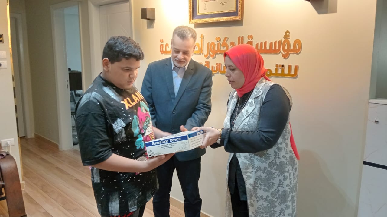 وقد شارك في تسليم العصا الإلكترونية الشيماء عبد المعطي، وكيل مديرية التضامن الاجتماعي، والدكتور ياسر أحمد جمعة، مؤسس ورئيس مجلس أمناء المؤسسة، وولاء أحمد سالمان، مدير إدارة الجمعيات الأهلية، وذلك بمبادرة إنسانية تهدف إلى دعم الطالب محمد، ابن مركز منفلوط، ورفع كفاءته في الحركة والاستقلالية.