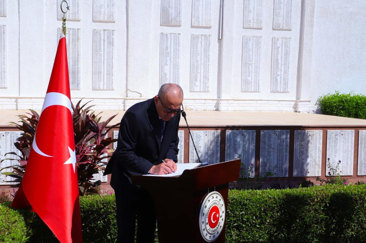 قام أعضاء السفارة التركية في القاهرة بزيارة مقبرة الشهداء الأتراك في القاهرة أولاً ووقفوا دقيقة صمت حداداً على أرواح 4500 مواطن تركي استشهدوا على جبهة فلسطين خلال الحرب العالمية الأولى، بالإضافة إلى أولئك الذين استشهدوا في 15 يوليو. وبعد تلاوة القرآن الكريم الصلاة على أرواح الشهداء، وقع صالح موطلو شن، سفير تركيا في القاهرة، على كتاب الشهداء التذكاري.