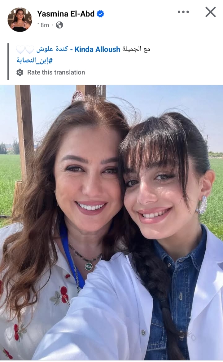 شاركت ياسمينا العبد جمهورها صورة جديدة من كواليس تصوير مسلسل ابن النصابة برفقة الفنانة كندة علوش، من خلال حسابها الرسمي عبر موقع التواصل الاجتماعي فيسبوك، وكتبت:" مع الجميلة كندة علوش.. ابن النصابة".