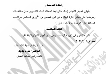 أكدت الهيئة الوطنية للانتخابات، بأنها ملتزمة بتطبيق القانون وتنفيذ جميع الأحكام القضائية الصادرة بخصوص استبعاد أو قبول المترشحين.