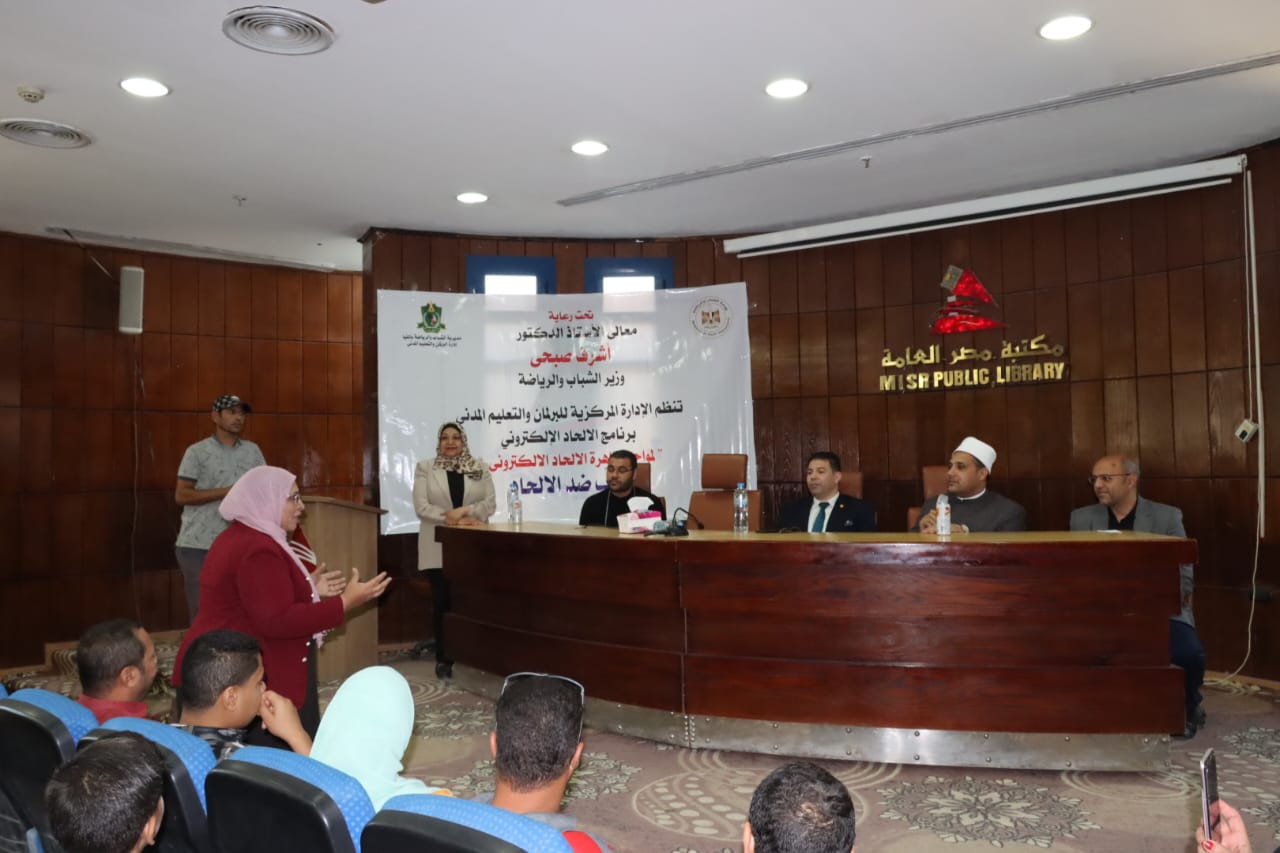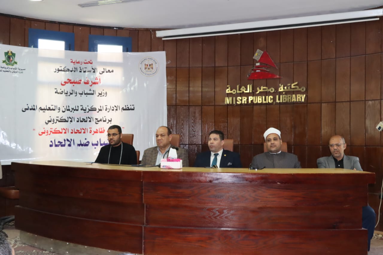 نظّمت وزارة الشباب والرياضة، من خلال الإدارة المركزية للتعليم المدني، الإدارة العامة للتعليم المدني وتأهيل الكوادر الشبابية، اللقاء السادس من فعاليات برنامج مواجهة الإلحاد الإلكتروني، وذلك بمكتبة مصر العامة بمحافظة المنيا، تحت شعار "شباب ضد الإلحاد".