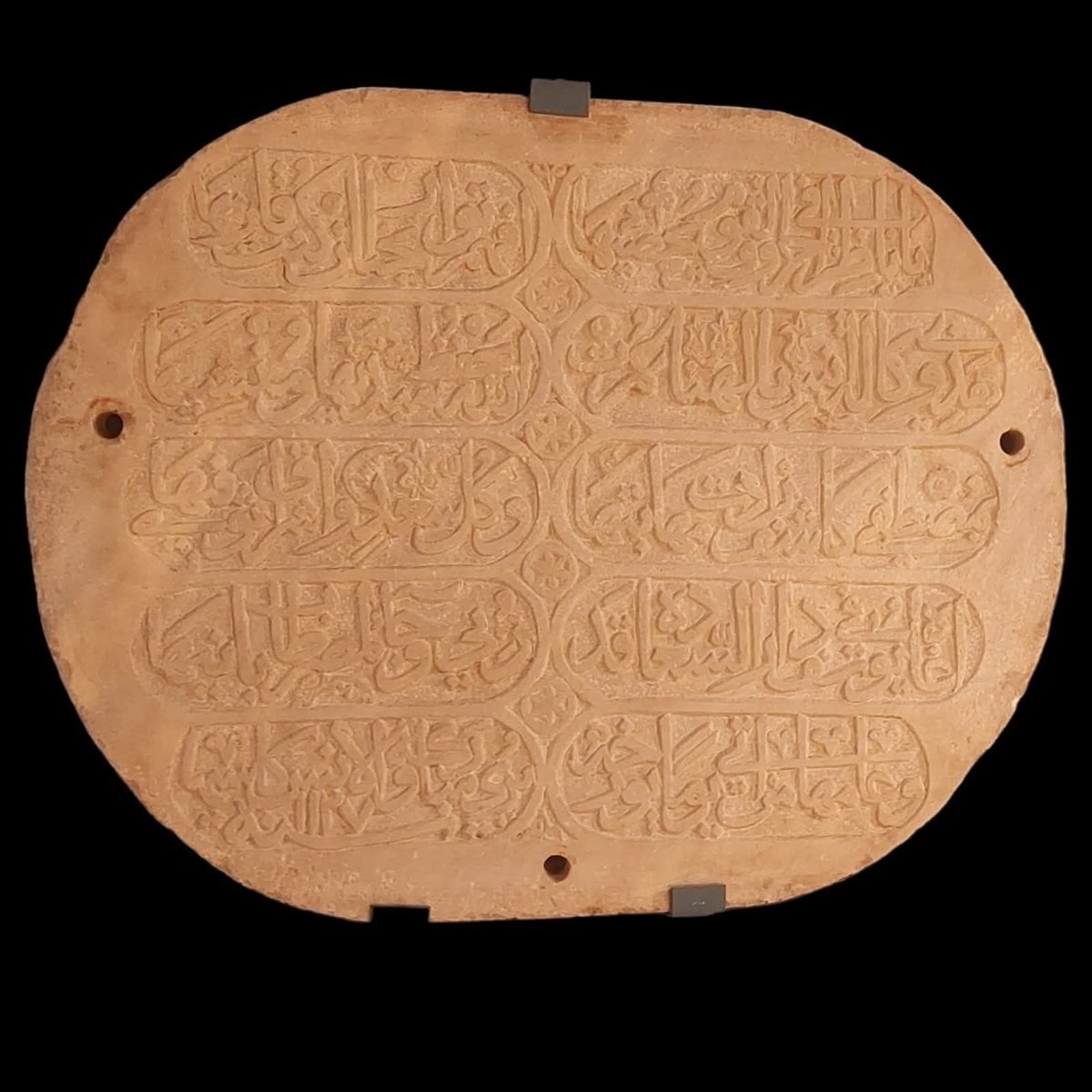 القطعة الأولى، وهي لوحة تأسيسية عثمانية نادرة، صُنعت من الرخام عام 1715م، وتُعد واحدة من أبرز معروضات المتحف لما تحمله من قيمة تاريخية وفنية. نُقشت اللوحة بخط الثلث البارز المعروف بجماله ودقته، وتحمل طابعًا معماريًا يعكس ملامح العمارة العثمانية في مصر. وتوثق اللوحة تأسيس وكالة تجارية خلال تلك الفترة، وتُظهر براعة الفنانين في تطويع الرخام كوسيلة للتوثيق والجمال.