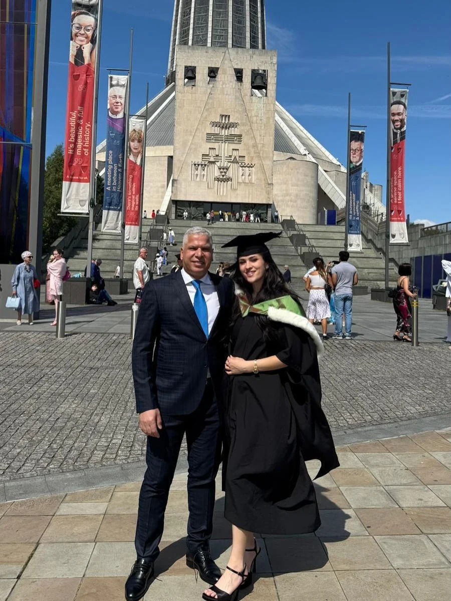 وائل جمعة يحتفل بتخرج ابنته من جامعة ليفربول (صور)