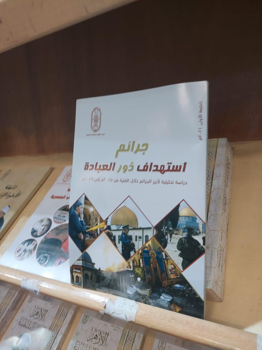 يقدّم جناح الأزهر الشريف بمعرض مكتبة الإسكندرية الدولي للكتاب، كتابًا توثيقيًا وتحليليًا بعنوان: "جرائم استهداف دور العبادة.. دراسة تحليلية لأبرز الجرائم خلال الفترة من 2015 إلى 2019"، وهو من إصدارات مرصد الأزهر لمكافحة التطرف. في إطار جهوده المتواصلة لمواجهة مثل هذه الجرائم، ونشر قيم التسامح ونبذ الكراهية.