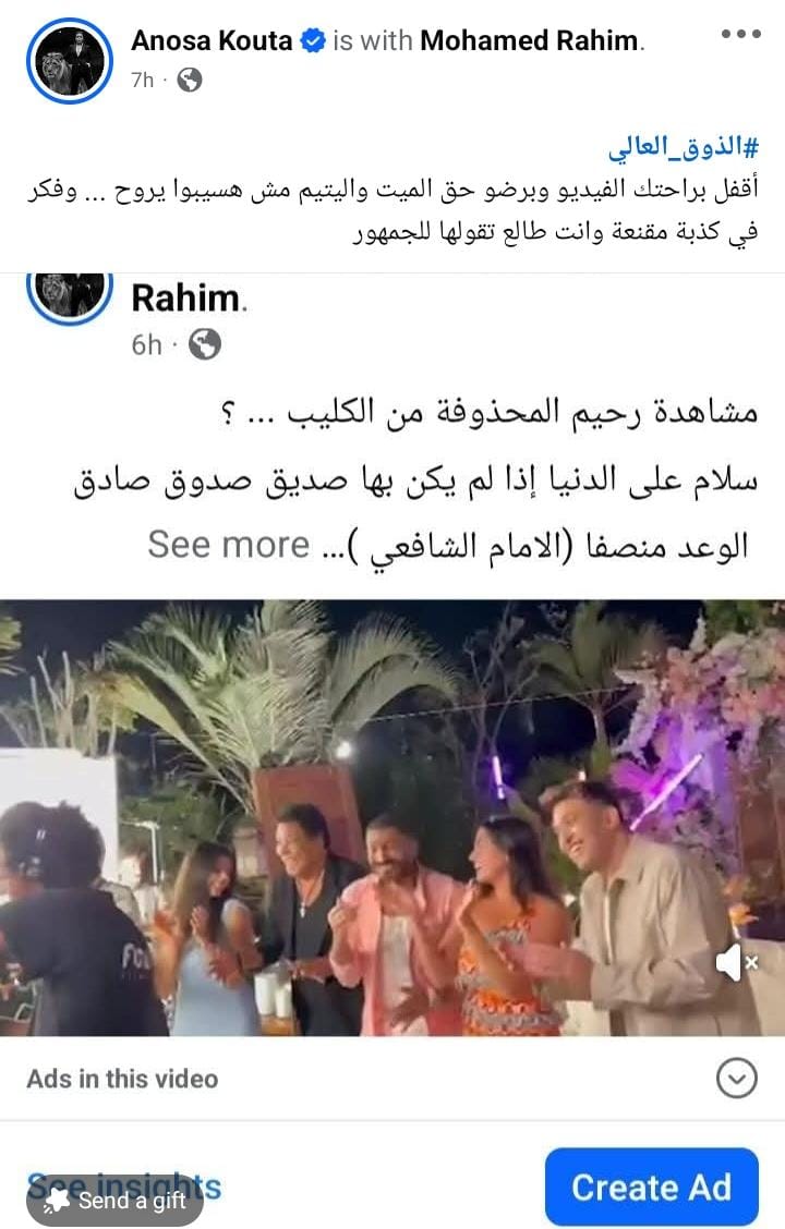 وكتبت أنوسة كوتة من خلال حسابها الرسمي عبر موقع التواصل الاجتماعي فيسبوك: "الذوق العالي.. أقفل براحتك الفيديو وبرضو حق الميت واليتيم مش هسيوا يروح.. وفكر في كذبة مقنعة وانت طالع تقولها للجمهور".