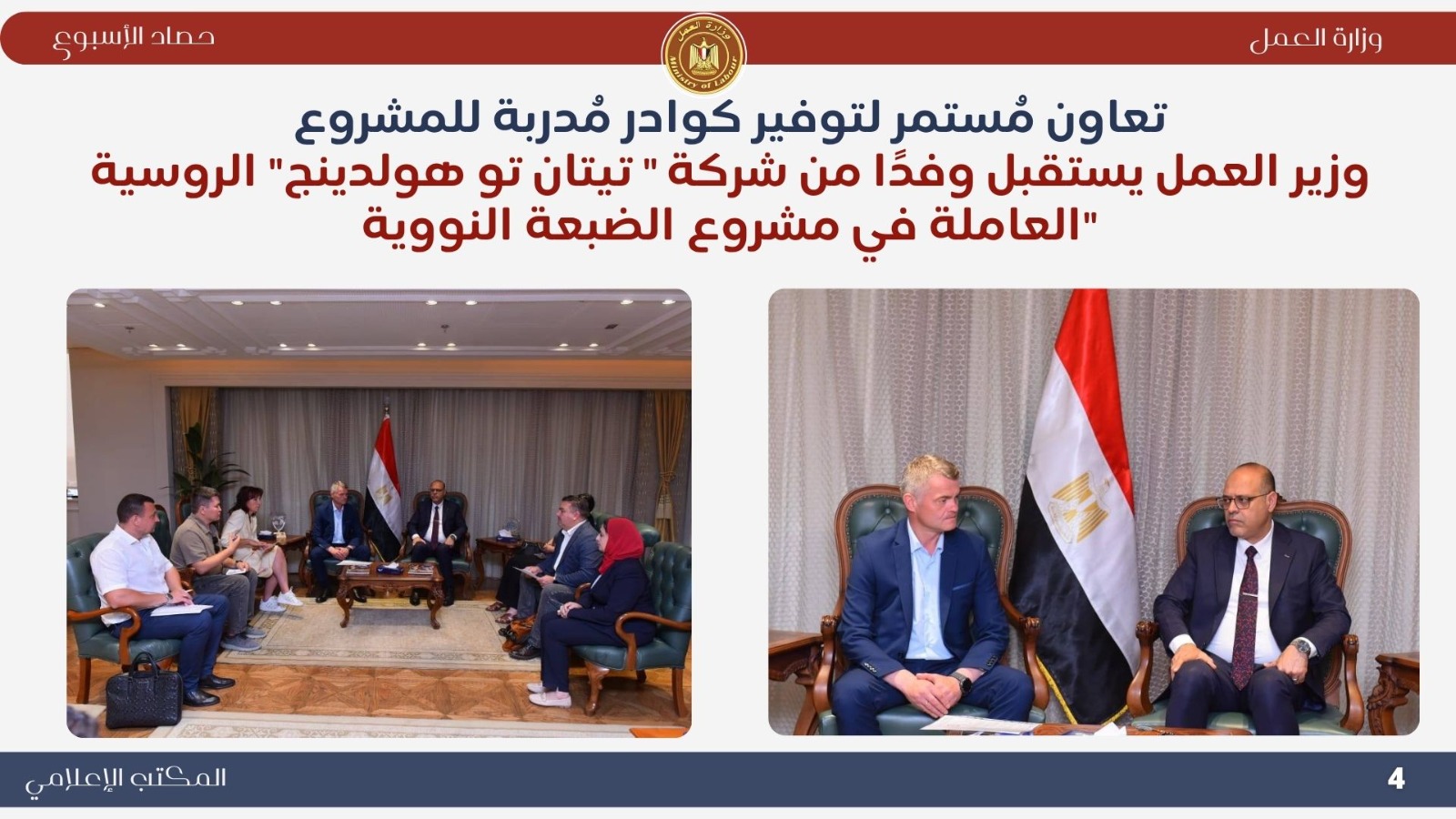 وزير العمل يلتقي وفد "تيتان تو" الروسية لتوفير فرص عمل للشباب بمشروع الضبعة النووي
