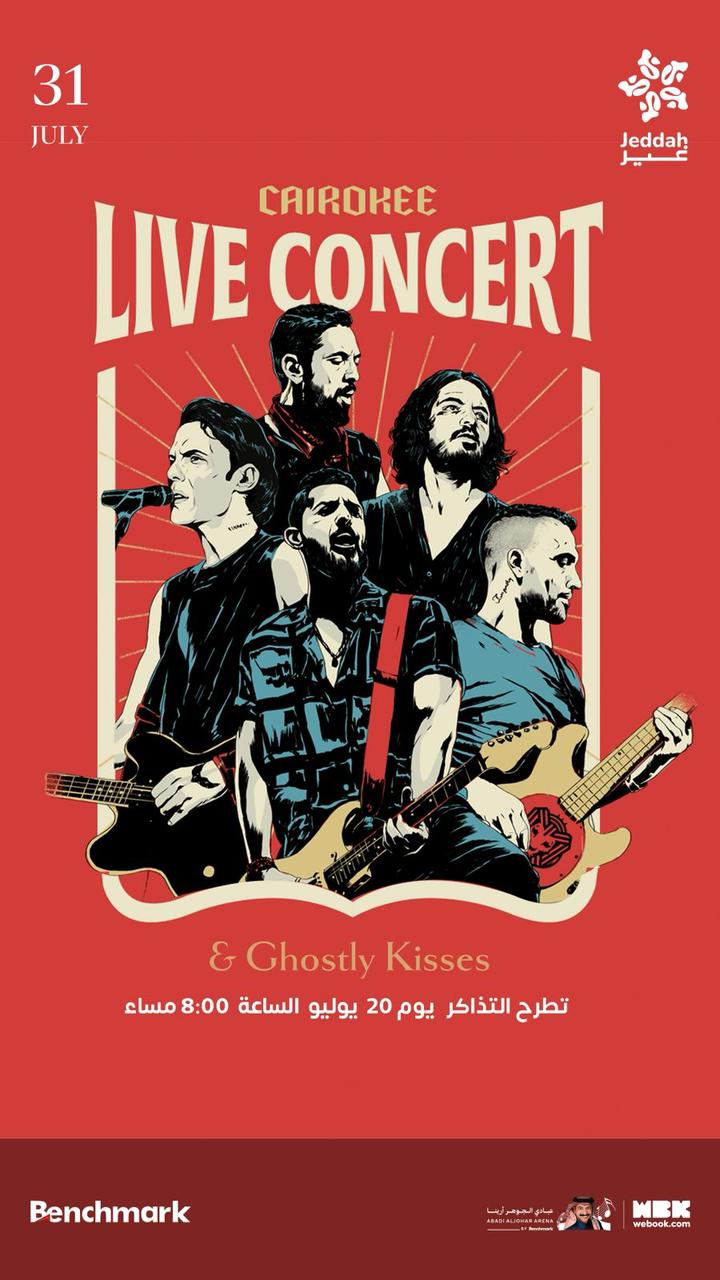 وأكدت الشركة المنظمة أن الحفل سيشهد عرضا مسرحيا وضوئيا مبهرا، يتكامل مع الأداء الموسيقي ليقدّم تجربة سمعية وبصرية استثنائية. كما يجمع الحفل بين الطابع الشرقي العصري لفرقة كايروكي والنمط الهادئ الساحر لأداء Ghostly Kisses، ما يعد الجمهور بليلة فنية لا تُنسى.