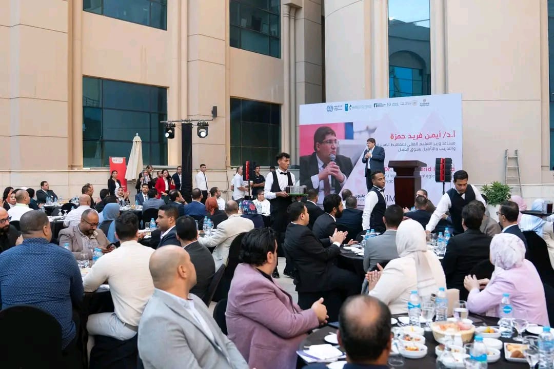 واستعرض د.أيمن فريد آليات ربط الخريجين والبرامج الأكاديمية باحتياجات سوق العمل، مشيرًا إلى جهود وزارة التعليم العالي في بناء منظومة متكاملة تشمل إنشاء 46 مركزًا للتطوير المهني في 34 جامعة (27 جامعة حكومية، و4 جامعات أهلية دولية، و3 جامعات تكنولوجية)، وإطلاق منصات رقمية لإدارة الخدمات المهنية على المستويين المركزي والإقليمي، إلى جانب إعداد برامج تدريب وتأهيل لكوادر المراكز وقيادات الجامعات والشركات، وتنفيذ برنامج تجريبي لرفع المهارات المهنية، فضلا عن جولات دراسية دولية لبحث أفضل الممارسات في مراكز التوظيف العالمية.