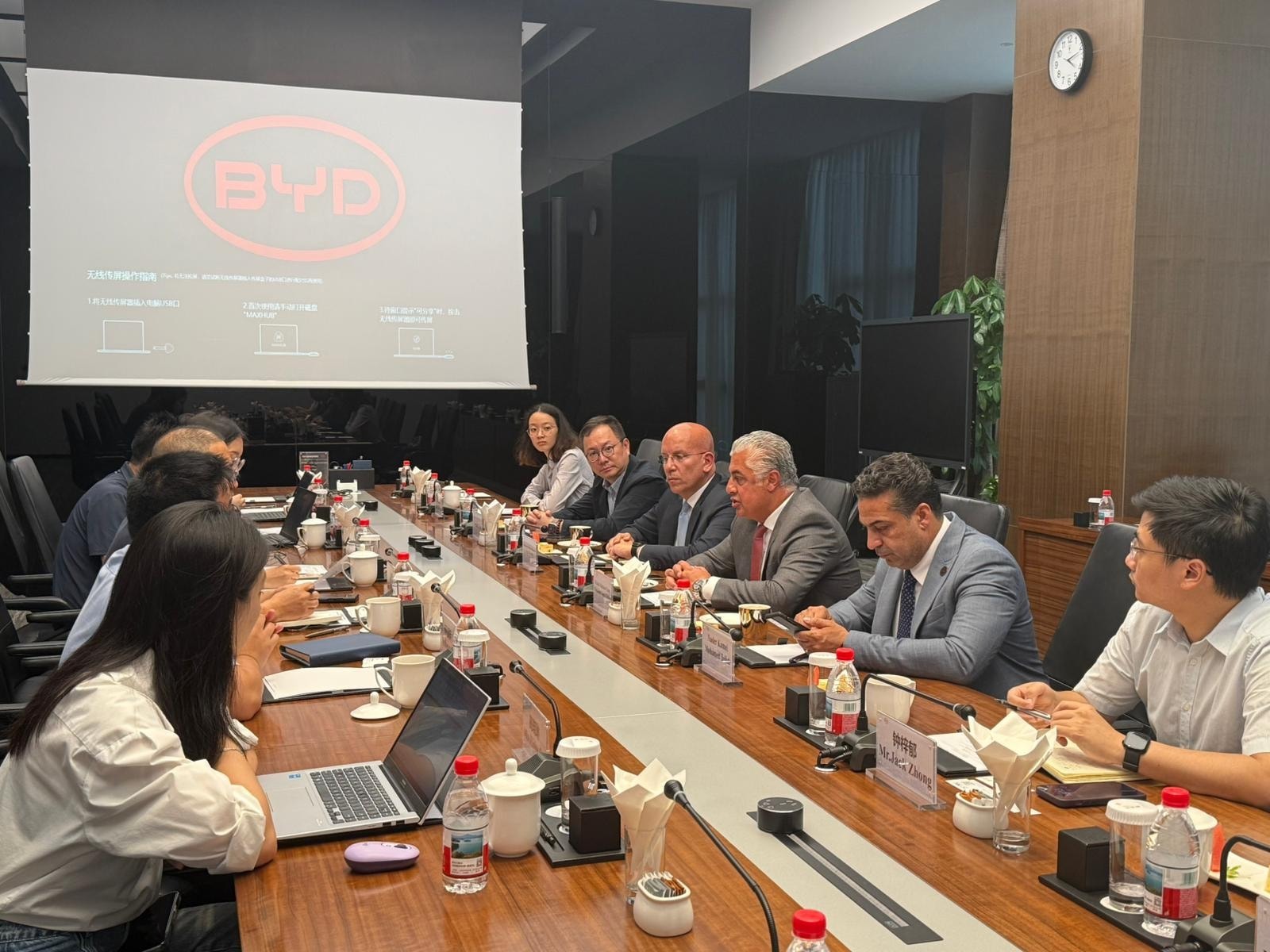 واختتم اليوم الأول لجولة وفد اقتصادية قناة السويس بمدينة شنزن، بزيارة مقر شركة "BYD"، للتعرف على أبرز منتجات الشركة الرائدة في صناعة السيارات الكهربائية بأنواعها EV، كما تختص بصناعة البطاريات الكهربائية للسيارات، وبطاريات التخزين، والألواح الشمسية، تبع الجولة اجتماعًا بين السيد وليد جمال الدين، والسيد جينفينج شي، نائب المدير العام لقسم الشركات في BYD، وعدد من مسؤولي الشركة، ناقش خلاله رئيس اقتصادية قناة السويس إمكانية تواجد الشركة بالمنطقة الاقتصادية لقناة السويس، كبوابة لوصول الشركة للأسواق الإفريقية والشرق الأوسط، مؤكدًا أن استثمار الشركة داخل المنطقة الاقتصادية لقناة السويس سيعزز تأسيس قاعدة صناعية عملاقة تشمل: صناعة السيارات الكهربائية، والبطاريات الكهربائية للسيارات، وكذا الألواح الشمسية، لافتًا إلى ما يمثله الموقع الاستراتيجي للهيئة من ميزة تنافسية غير قابلة للمقارنة، تخدم الطموحات المشتركة للجانبين من توطين صناعة المركبات الكهربائية إقليميًّا، لا سيما أنها إحدى الركائز المستقبلية للصناعة في ظل الطلب المتنامي، لمواجهة الآثار الحادة للتغيرات المناخية.