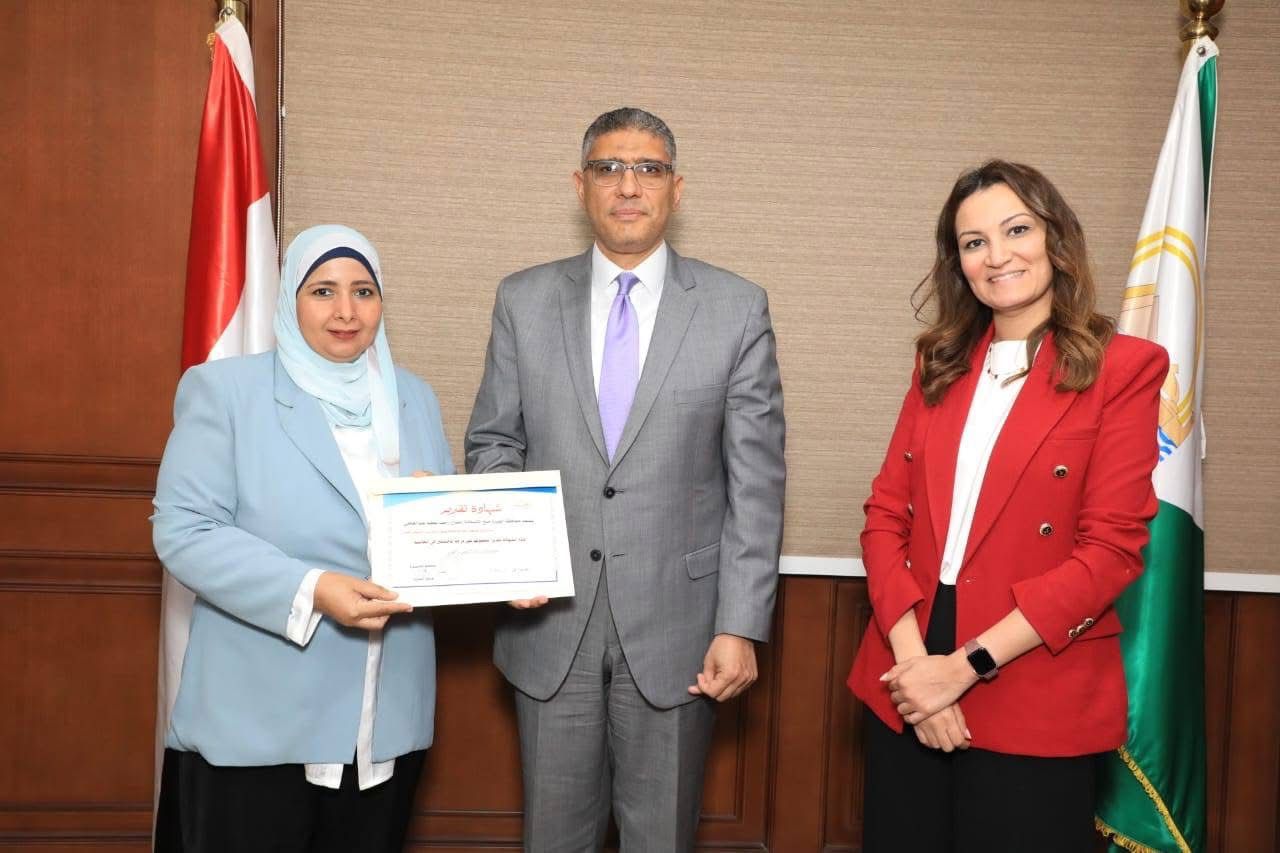 الأستاذة نهى سمير إبراهيم جمعة، مديرة إدارة التوثيق الإلكتروني بديوان عام المحافظة، حصلت على ماجستير مهني في التخطيط والتنمية المستدامة.