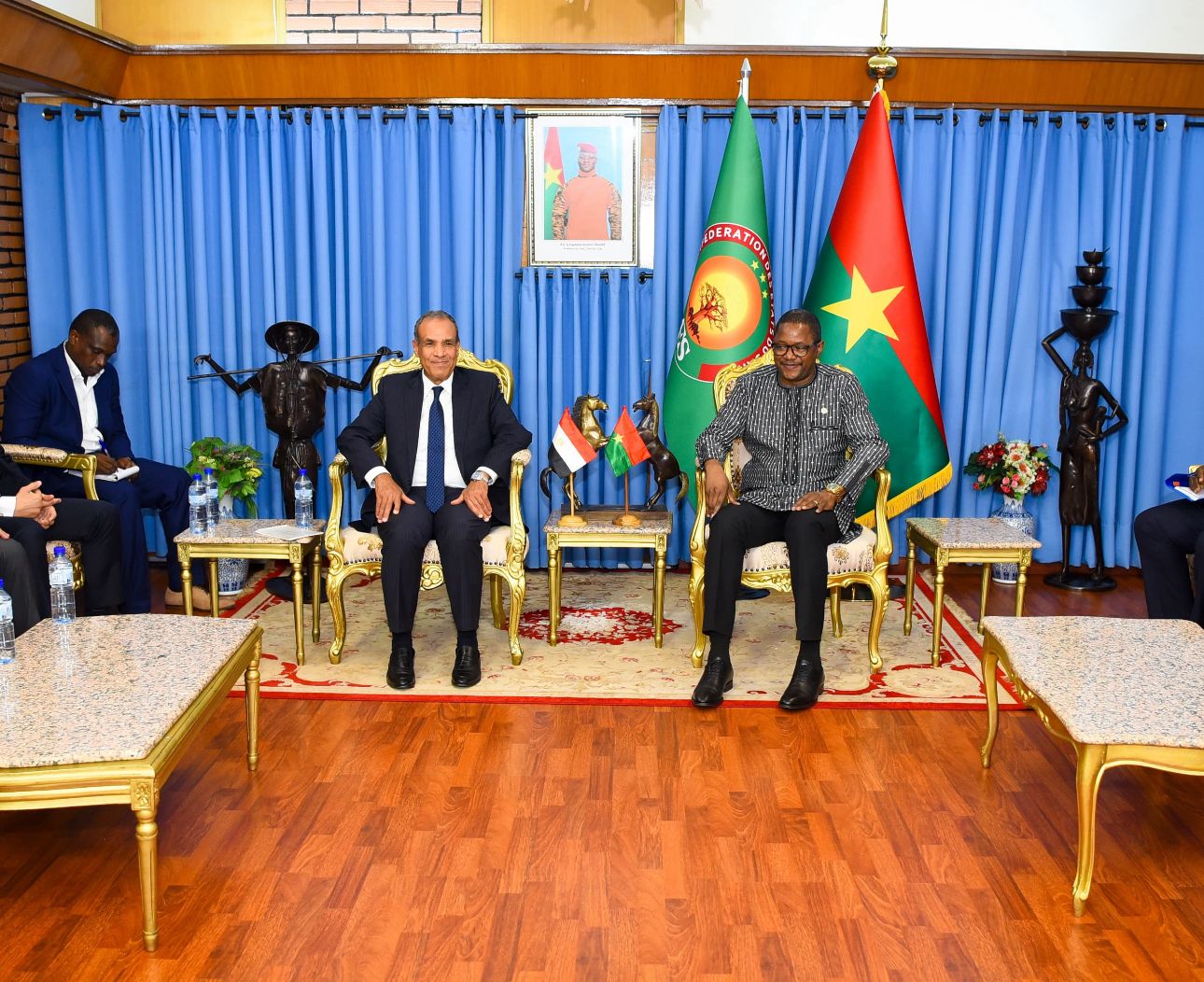 التقى د. بدر عبد العاطي، وزير الخارجية والهجرة، يوم الثلاثاء الموافق ٢٢ يوليو ٢٠٢٥، مع السيد "كاراموكو جان ماري تراوري" وزير الشئون الخارجية والتعاون الإقليمي والبوركينيين في الخارج ببوركينا فاسو، وذلك في مستهل زيارته إلى العاصمة واجادوجو، في المحطة الثانية من جولته بغرب إفريقيا.