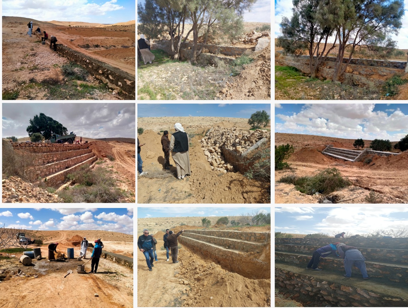 من بين أبرز الجهود التي نفذها المشروع، وفقاً للدكتور حسين محمد، عضو الفريق البحثي، هي إعادة تأهيل سدود وحواجز حصاد المياه التي فقدت فعاليتها في حجز المياه بسبب عمليات الترسيب وغياب الصيانة الدورية. وقد دعم المشروع ورفع كفاءة ستة سدود في وادي العجرمة، وأسفرت عمليات الصيانة عن استعادة نحو متر مربع من الأراضي القابلة للزراعة، مع توفير المياه اللازمة لري أشجار الزيتون في موقع الدراسة. وتُظهر الصور الملتقطة قبل وبعد عمليات الصيانة الأثر الإيجابي لهذه الجهود في تحسين الحالة العامة للبنية التحتية المائية.