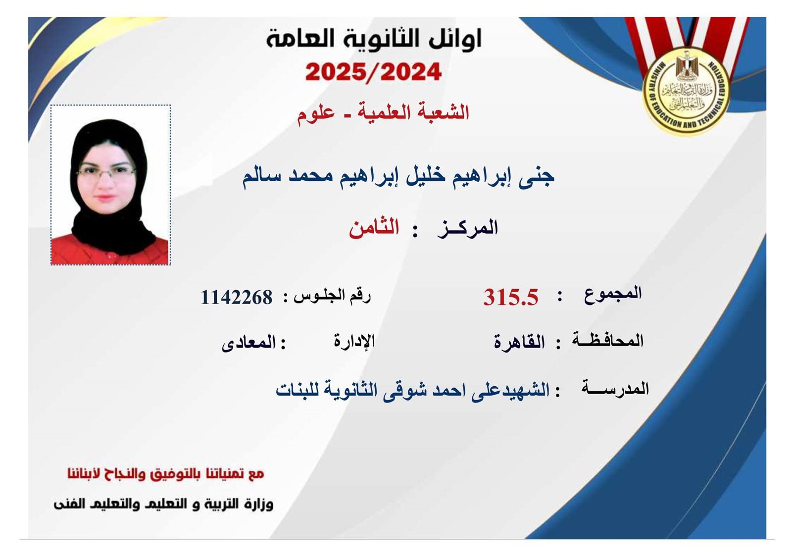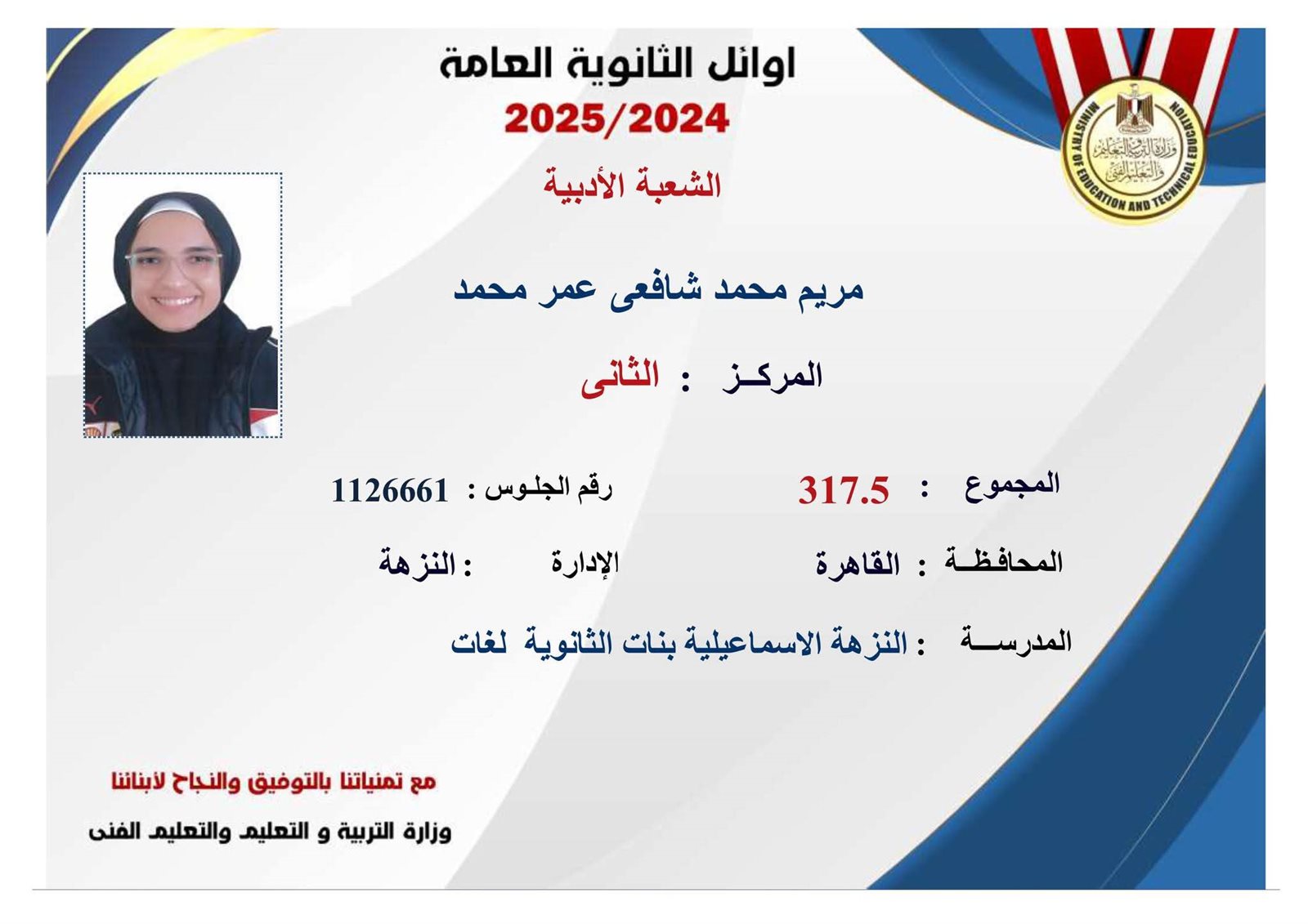 وثمن محافظ القاهرة جهد أولياء الأمور من أجل توفير سبل التفوق ليصلوا بأبنائهم لهذا المستوى العلمي المتميز ، كما أثنى على جميع المعلمين والعاملين المشاركين في امتحانات الشهادة الثانوية العامة .