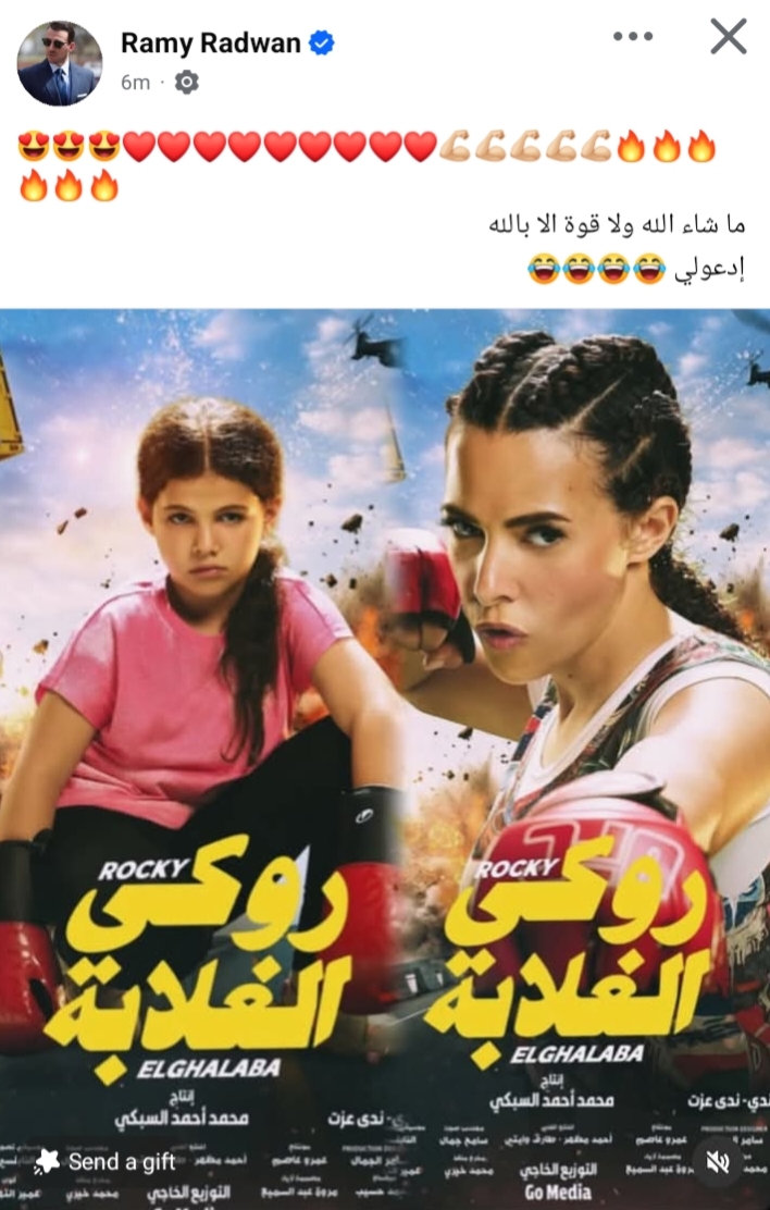 روج الإعلامي رامي رضوان لـ فيلم روكي الغلابة بطولة زوجته الفنانة دنيا سمير غانم، والذي من المقرر طرحه يوم الأربعاء الموافق 30 يوليو من الشهر الجاري.