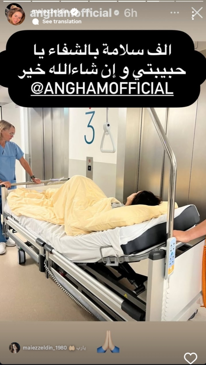 ونشرت مي عز الدين صورة لـ أنغام أثناء وجودها في المستشفى ووجهت لها رسالة متمنية لها الشفاء العاجل.