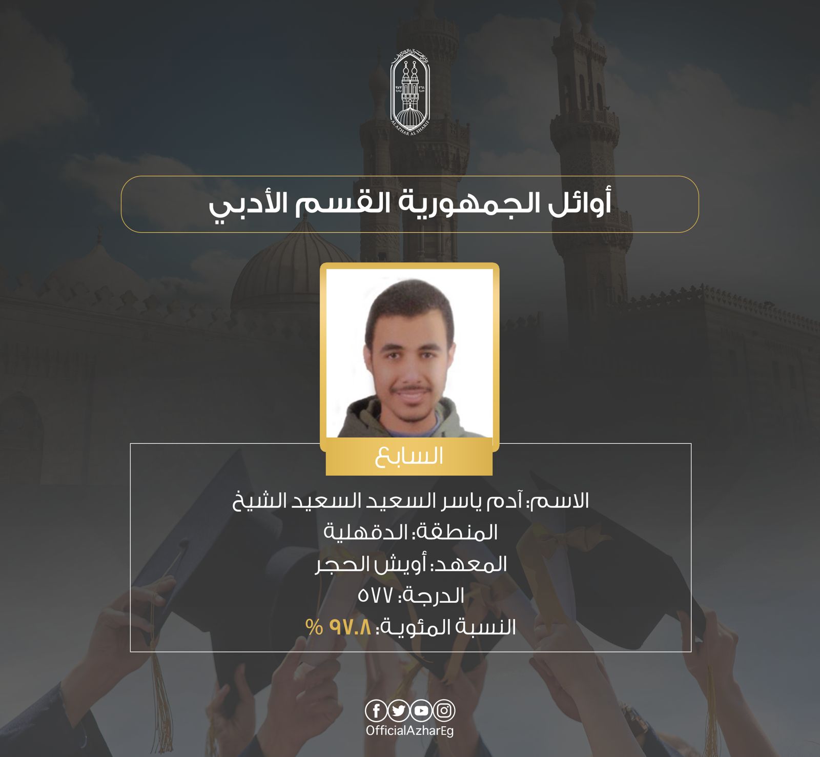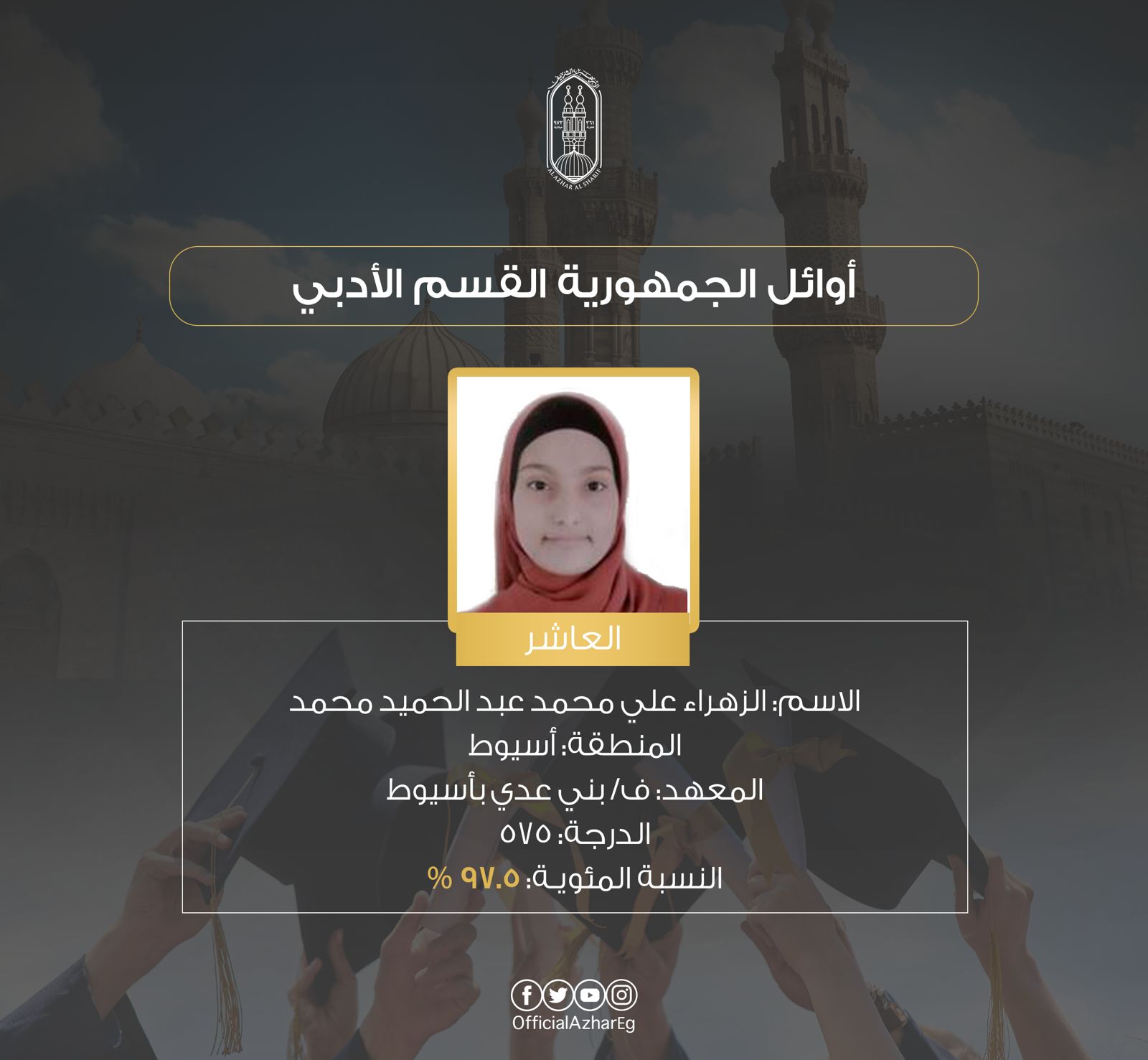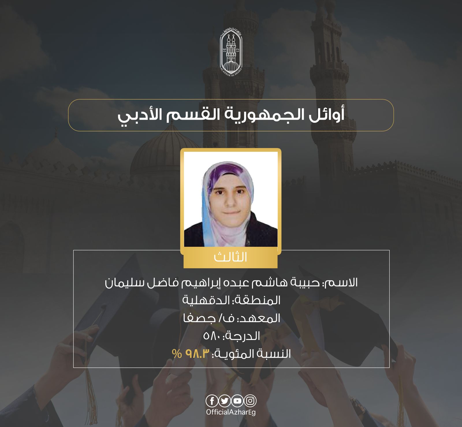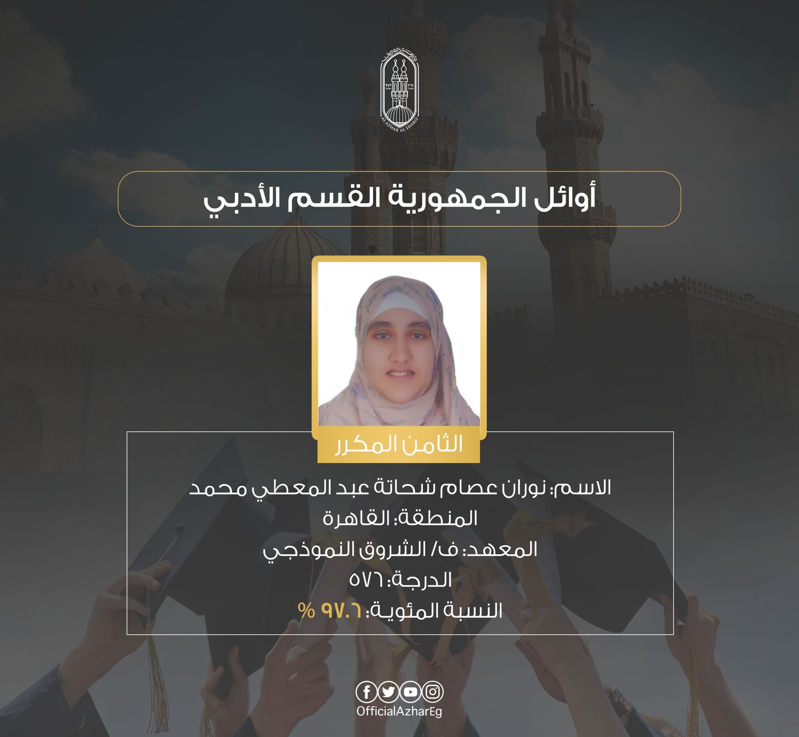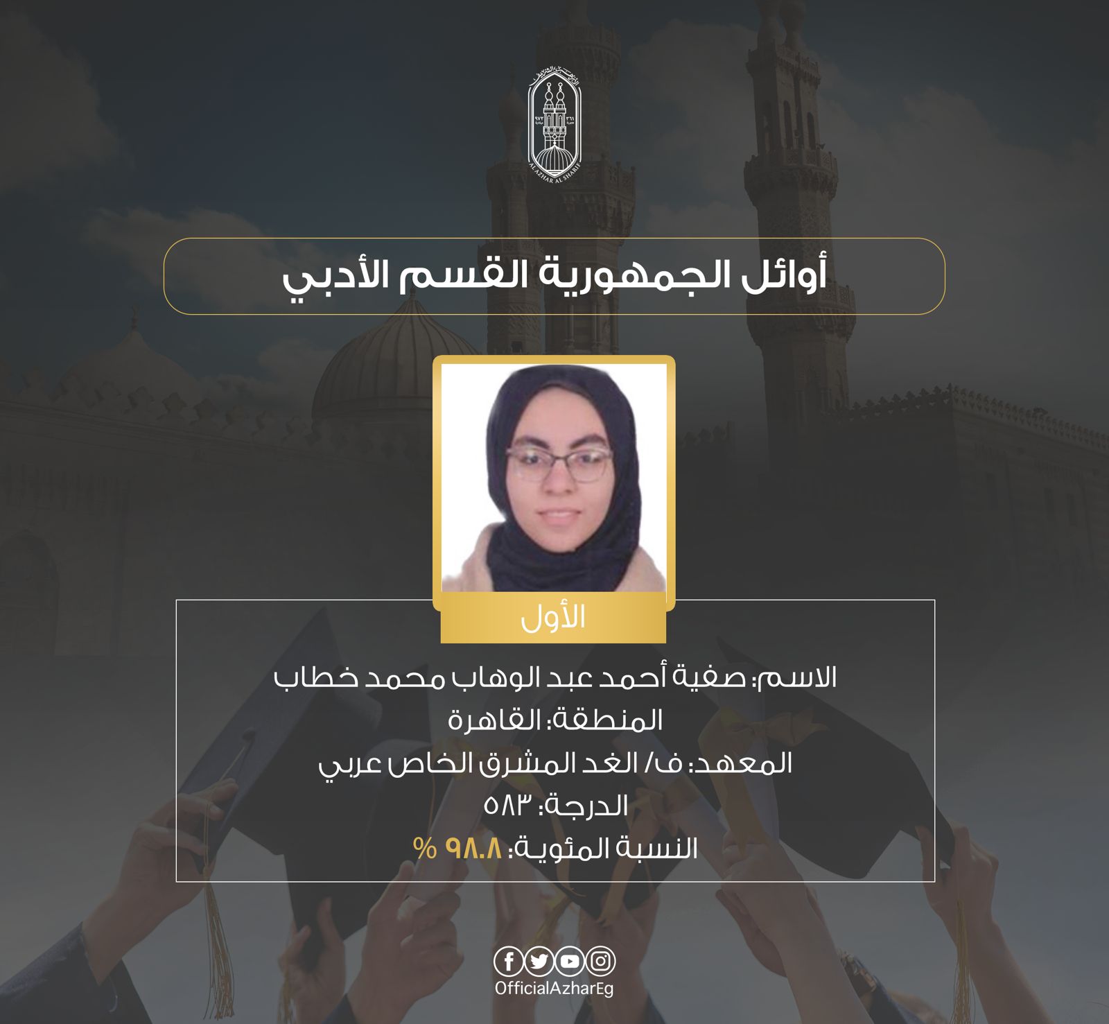 وجاء أوائل القسم الأدبي بالشهادة الثانوية الأزهرية على النحو التالي:
