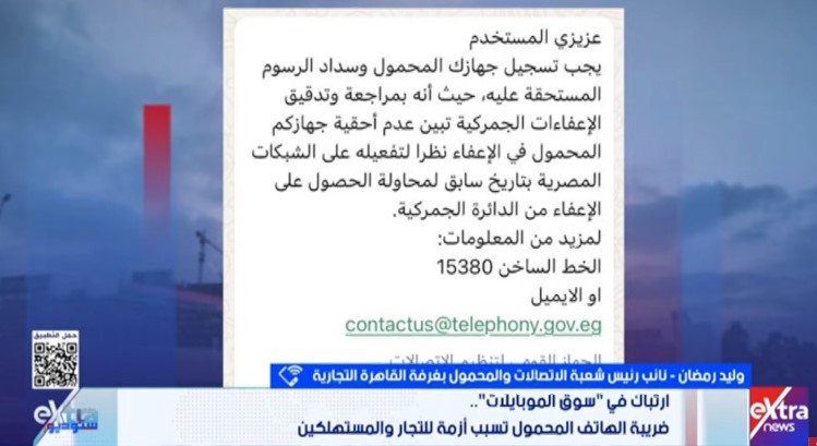 وانتقد بيان جهاز تنظيم الاتصالات، معتبرًا أنه تضمن لهجة استفزازية، قائلاً: «ليس من الاحترام للمواطن المصري أن يتم إيقاف 60 ألف جهاز مملوك لـ60 ألف مواطن دون تحقق مسبق»، مشددًا على أن الإجراء الصحيح هو إجراء الفحص أولًا للتأكد من وجود مخالفة، قبل اتخاذ أي قرار بالإيقاف أو فرض الغرامات.