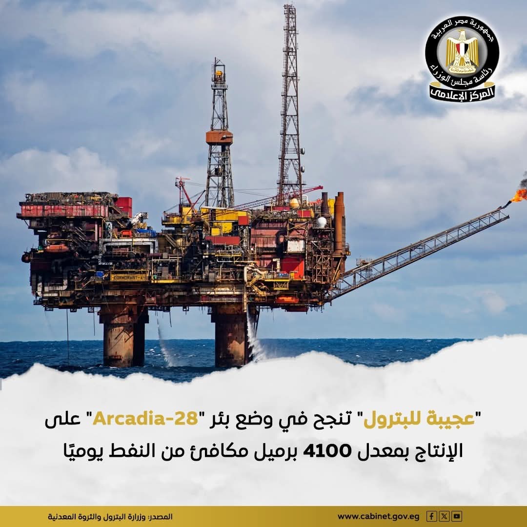 عجيبة للبترول" تنجح في وضع بئر "Arcadia-28" على الإنتاج بمعدل 4100 برميل مكافئ يوميًا