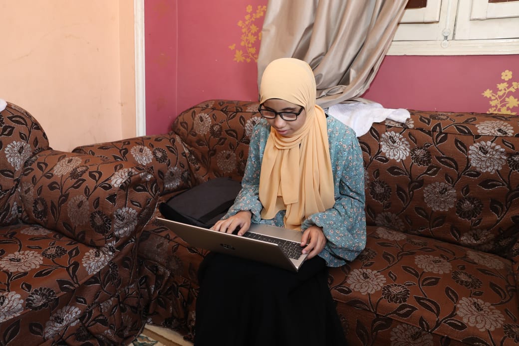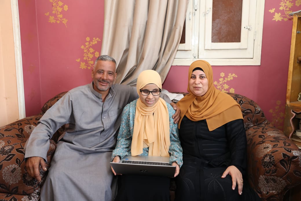 وقامت وزارة الاتصالات وتكنولوجيا المعلومات بتسليمها جهاز " لاب توب" مدعم بالتطبيقات اللازمة بما يتناسب مع متطلبات ذوي الإعاقة البصرية فى منزل أسرتها بقرية جروان التابعة لمركز الباجور بمحافظة المنوفية.