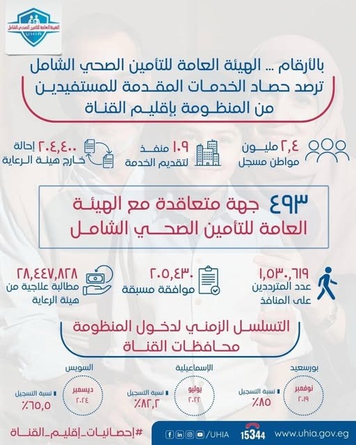 الهيئة العامة للتأمين الصحي ترصد حصاد الخدمات المقدمة للمستفيدين في إقليم القناة