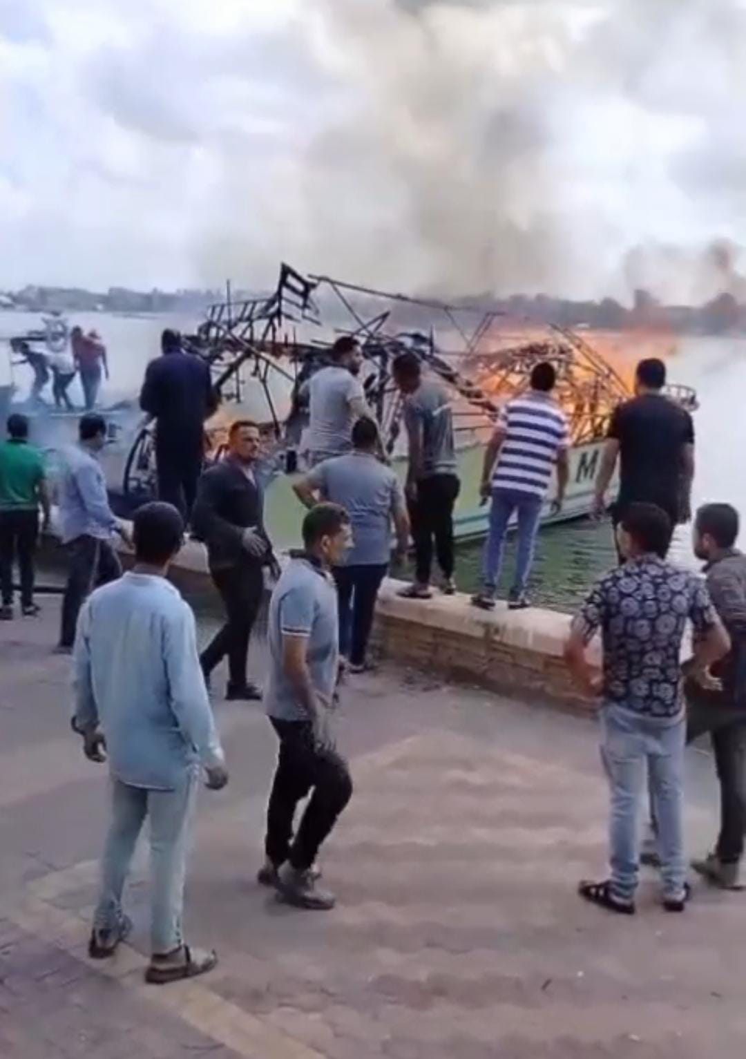 حريق هائل يلتهم مركب نزهة على كورنيش رشيد دون إصابات بشرية