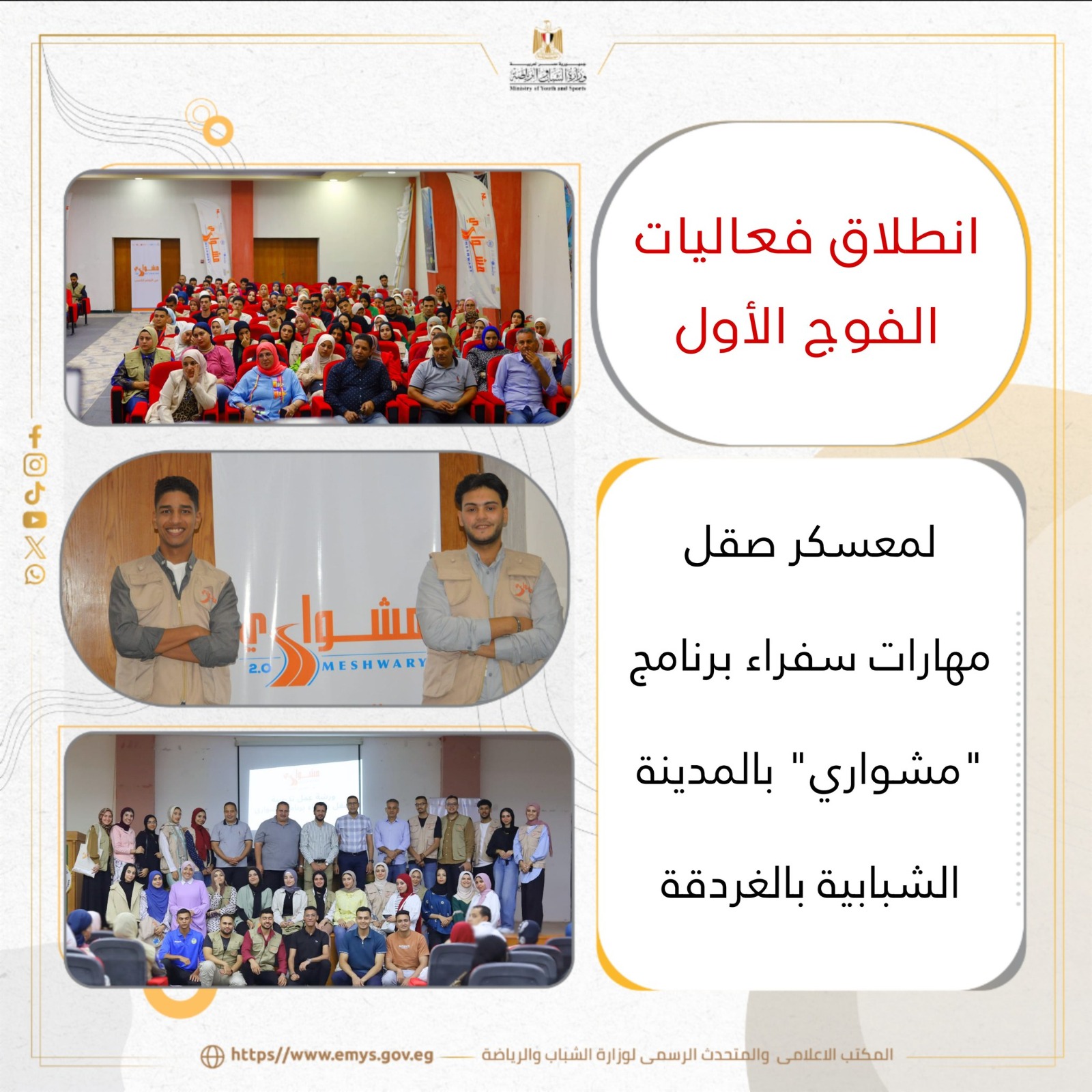 انطلاق فعاليات الفوج الأول لمعسكر صقل مهارات سفراء برنامج "مشواري" بالمدينة الشبابية بالغردقة