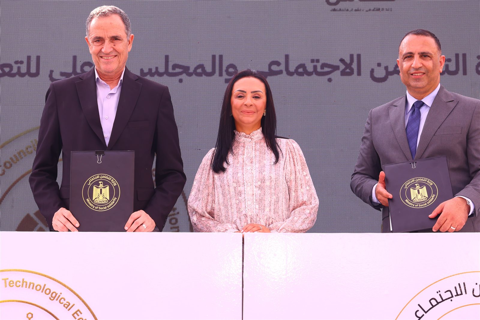 وقع البرتوكول الدكتور محمد العقبي مساعد وزيرة التضامن الاجتماعي والمشرف العام على مشروع وحدات التضامن الاجتماعي بالجامعات، والدكتور أحمد الجيوشي أمين عام المجلس الأعلى للتعليم التكنولوجي.