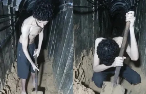 وفي تسجيل مصوّر جديد، بثته كتائب القسام من داخل نفق فى قطاع غزة، حيث يتحدث أسير إسرائيلي، يُفترض أن اسمه أفيتار دافيد، بالكاد يستطيع الحركة، وجسدٌ متهالك، وحبر باهت، وزجاجات ماء شحيحة، ومرفقين ليسجل يوميات الجوع والألم على ورقات معلقة بجدار التراب، من هناك، وجه رسالة قاسية إلى رئيس وزرائه بنيامين نتنياهو: "ما أفعله الآن هو حفر قبرى بيدى".