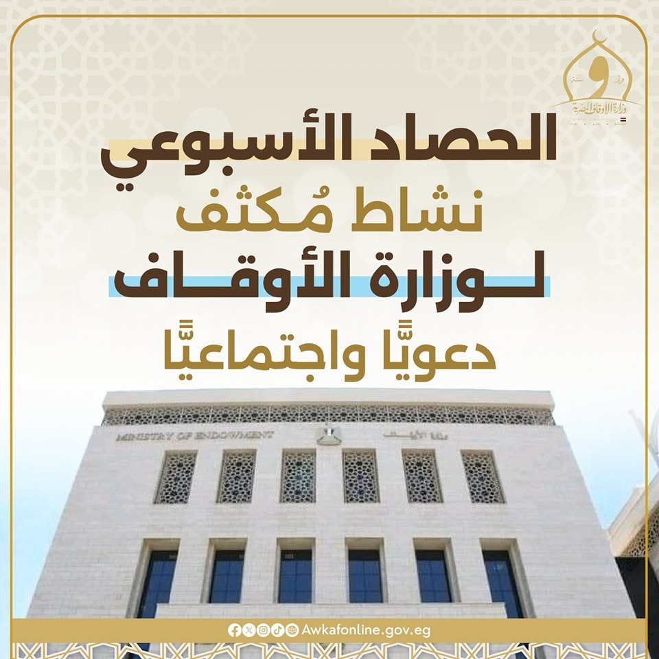 يعرض المركز الإعلامي بوزارة الأوقاف إحصائية بأنشطة الوزارة خلال الأسبوع المنصرم، وهي كما يلي:
