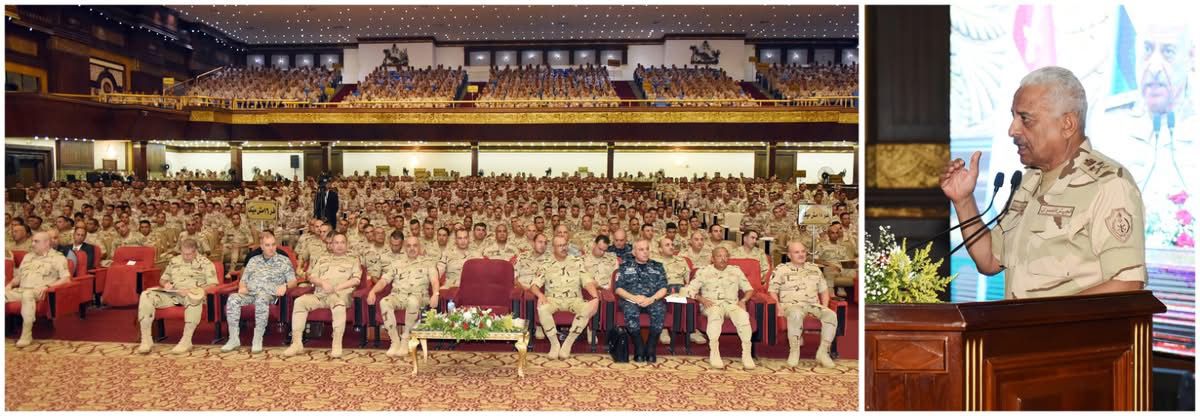 وألقى الفريق أول عبد المجيد صقر القائد العام للقوات المسلحة وزير الدفاع والإنتاج الحربى كلمة نقل خلالها تحيات وتقدير السيد الرئيس عبد الفتاح السيسى رئيس الجمهورية القائد الأعلى للقوات المسلحة للحضور ، مشيراً إلى أن القيادة العامة للقوات المسلحة حريصة على الإهتمام بالفرد المقاتل وتطوير آداءه القتالى بما يمكنه من تنفيذ كافة المهام التى توكل إليه بكفاءة وإقتدار تحت مختلف الظروف ، وطالب القائد العام للقوات المسلحة المقاتلين أن يكونوا قدوة فى الإنضباط الذاتى والوصول إلى أعلى مستويات الجاهزية القتالية للحفاظ على أمن الوطن وإستقراره مهما كلفهم ذلك من تضحيات ، كما شاركهم تناول وجبة الغداء مثنياً على الروح المعنوية العالية للمقاتلين وحرصهم على بذل الغالى والنفيس لحماية الوطن وصون مقدراته .