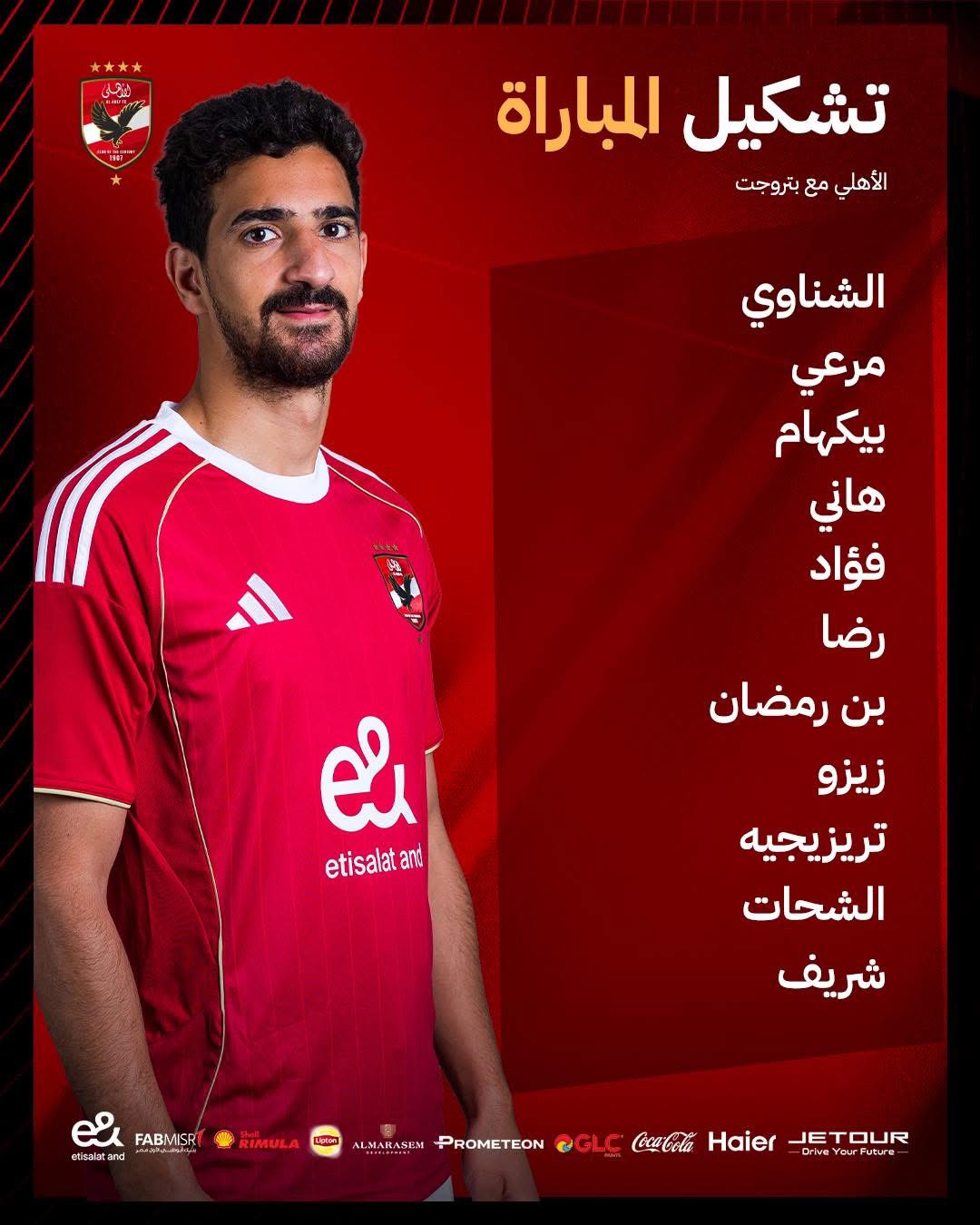 وكشف الجهاز الفني بقيادة الإسباني خوسيه ريبيرو عن التشكيل الأساسي الذي سيخوض به اللقاء، والذي شهد مشاركة عدة أسماء بارزة على رأسها الحارس الدولي محمد الشناوي، والوافد الجديد أحمد السيد زيزو، إلى جانب الظهور الأساسي للنجم محمود حسن تريزيجيه.