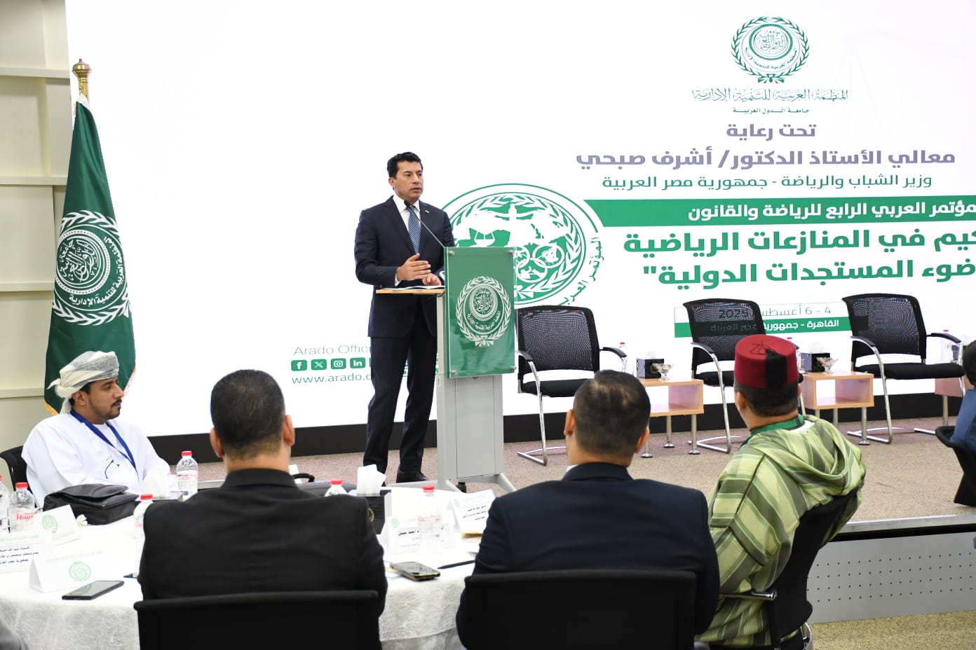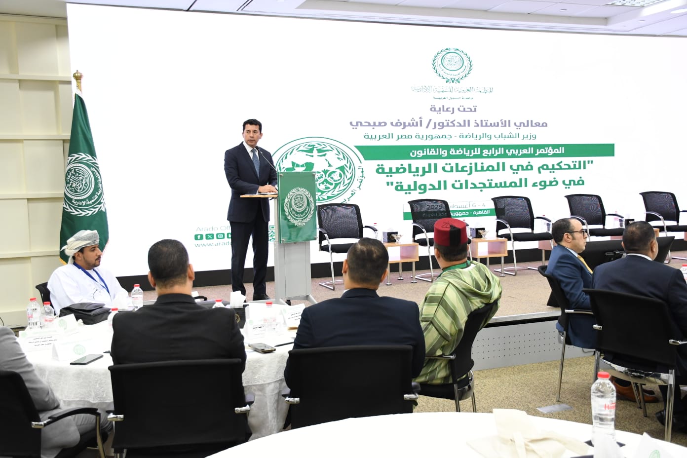 شهد الدكتور أشرف صبحي، وزير الشباب والرياضة ورئيس المكتب التنفيذي لمجلس وزراء الشباب والرياضة العرب، انطلاق فعاليات المؤتمر العربي الرابع للرياضة والقانون، الذي تنظمه المنظمة العربية للتنمية الإدارية – جامعة الدول العربية، تحت عنوان "التحكيم في المنازعات الرياضية في ضوء المستجدات الدولية"، بمشاركة وزراء الرياضة العرب وكبار المسؤولين والخبراء من 13 دولة عربية.