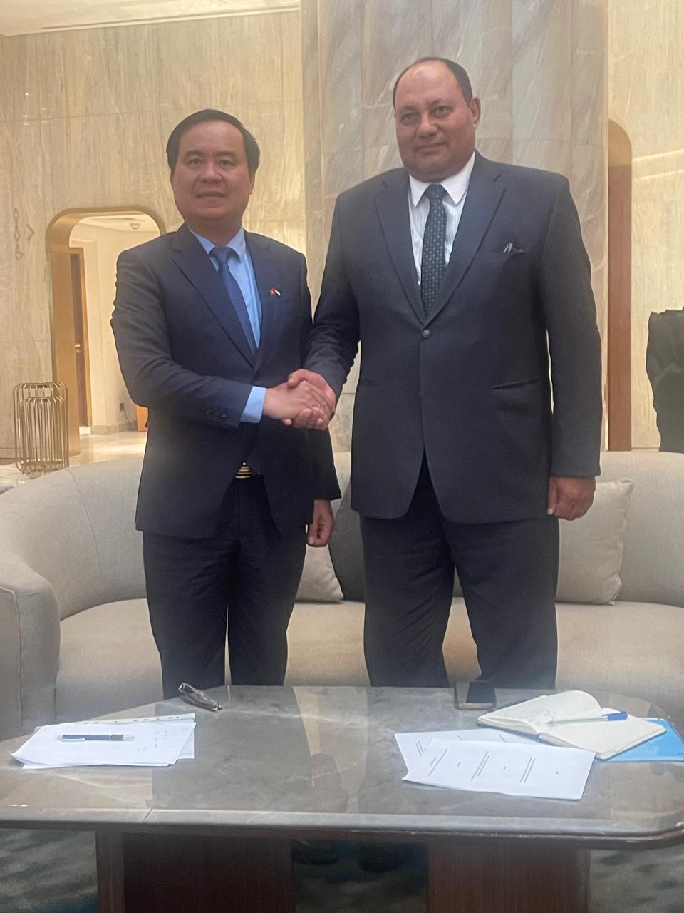 التقى المهندس مصطفى الصياد، نائب وزير الزراعة واستصلاح الأراضي، اليوم، و "فان هانج" نائب وزير الزراعة والتنمية الريفية في فيتنام، وذلك في إطار جهود تعزيز العلاقات الثنائية والتعاون المشترك في القطاع الزراعي بين البلدين، وذلك بحضور الدكتور سعد موسى نائب رئيس مركز البحوث الزراعية والمشرف على العلاقات الزراعية الخارجية.