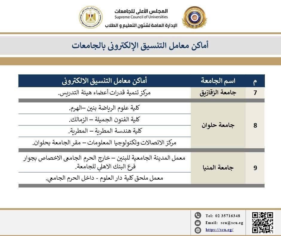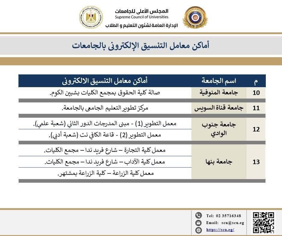 ويمكن للطلاب الذين يحتاجون هذه الخدمة التوجه إلى أقرب معمل حاسب آلي متاح بالجامعات الحكومية للاستفادة من هذه الخدمات، التي تُقدم مجانًا وتهدف إلى مساعدة الطلاب وأولياء الأمور خلال فترة التنسيق.