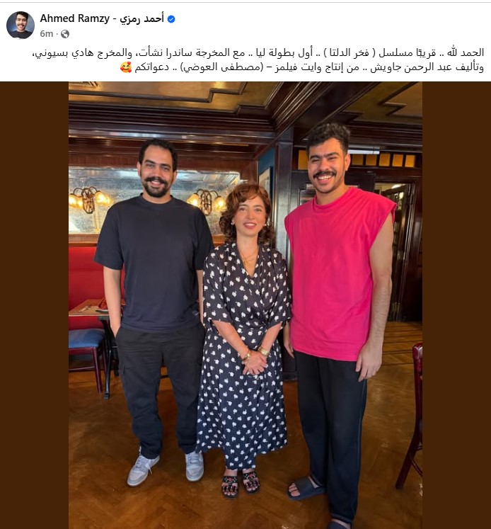 أعلن صانع المحتوى والفنان الشاب أحمد رمزي عن بطولته لمسلسل جديد تحت عنوان "فخر الدلتا" بالتعاون مع ساندرا نشأت وهادي بسيوني ومن تأليف عبد الرحمن جاويش.