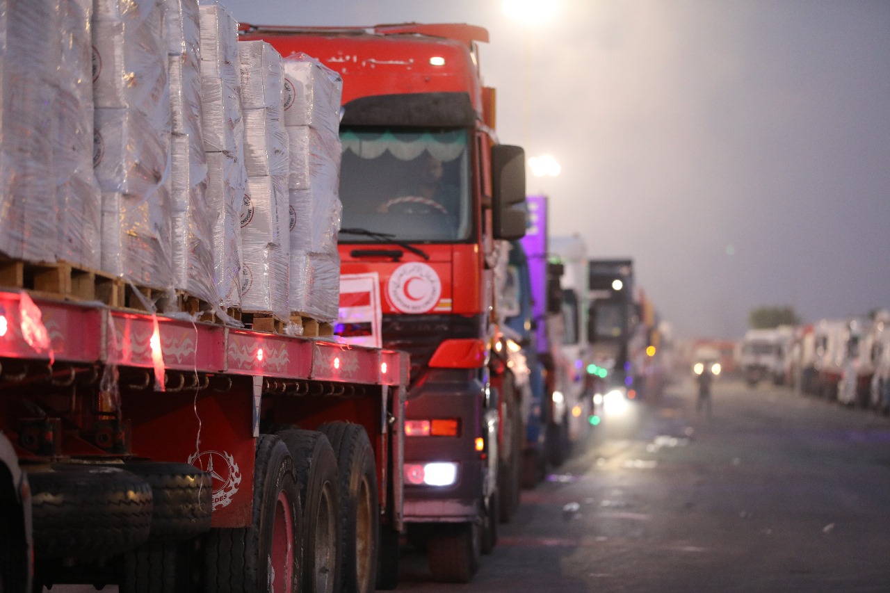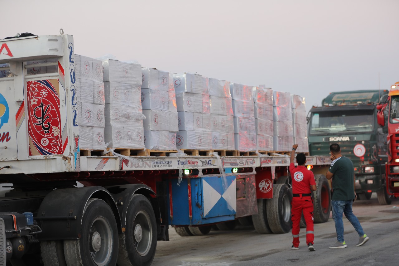 ويتواجد الهلال الأحمر المصري كآلية وطنية لتنسيق وتفويج المساعدات إلى غزة، على الحدود منذ بدء الأزمة حيث لم يتم غلق معبر رفح من الجانب المصري نهائيًا، وواصل تأهبه فى كافة المراكز اللوجستية وجهوده المتواصلة لدخول المساعدات التي بلغت نحو 35 ألف شاحنة محملة بنحو نصف مليون طن من المساعدات الإنسانية و الإغاثة، وذلك بجهود 35 ألف متطوع بالجمعية.