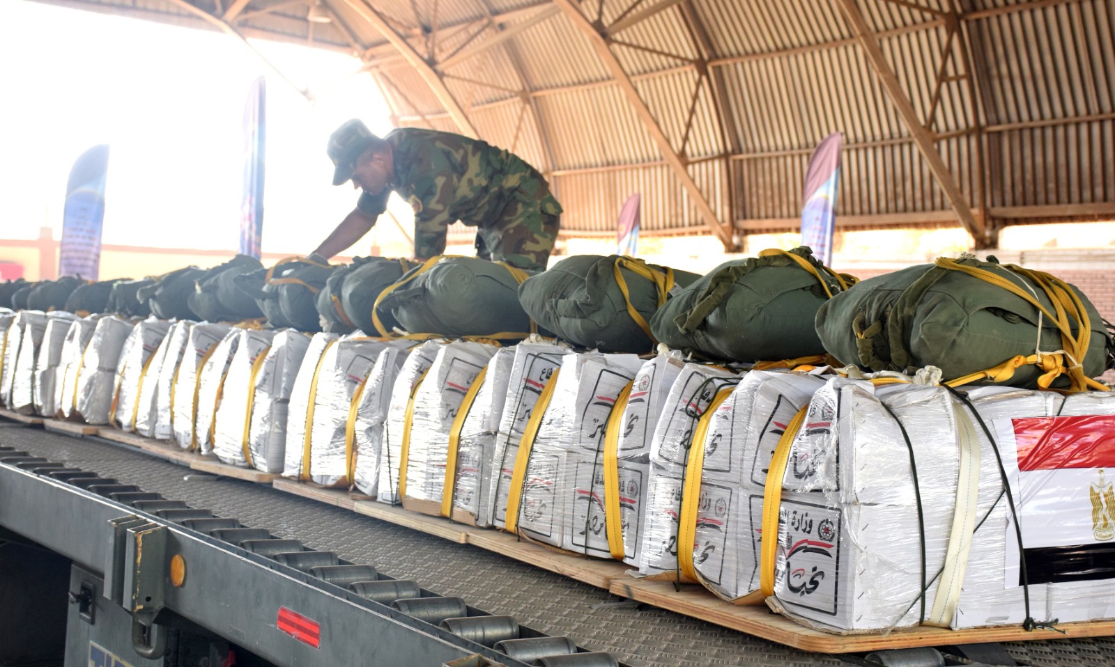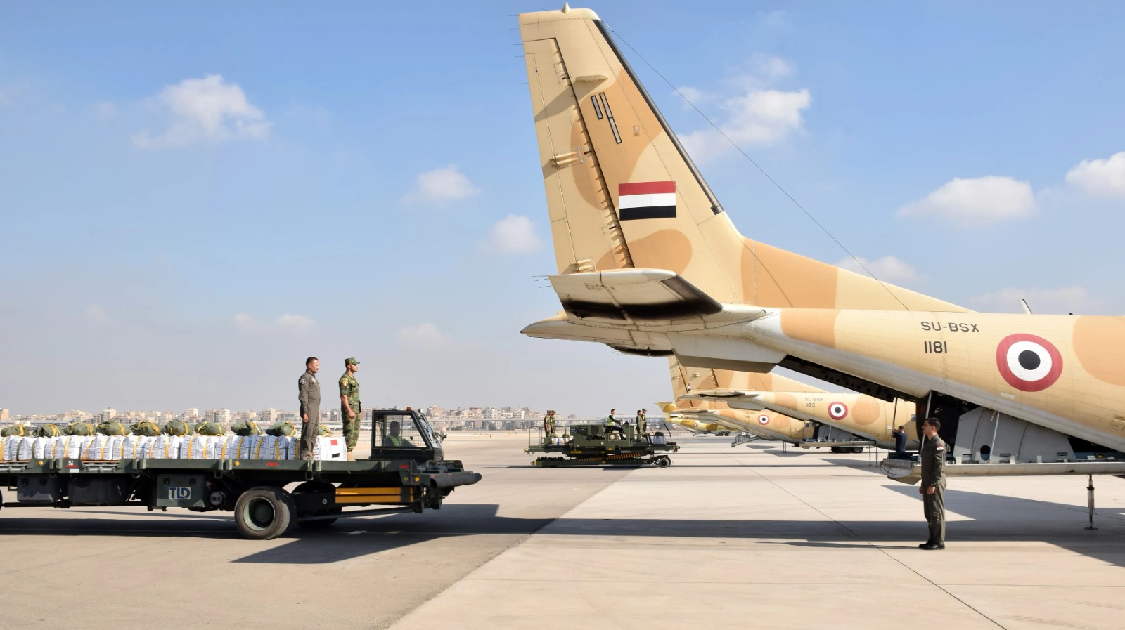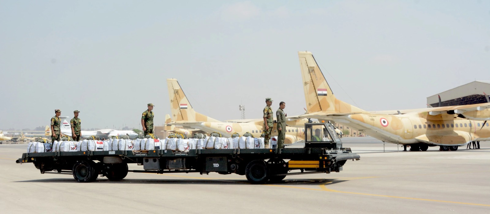 وأقلعت 12 طائرة نقل عسكرية على مدار الثلاثة أيام الماضية محملة بكميات كبيرة من المساعدات الغذائية لتنفيذ أعمال الإسقاط الجوى على المناطق التى يصعب الوصول إليها برًا بقطاع غزة، وذلك بالتزامن مع إستمرار المساعى المصرية لتدفق الشاحنات المحملة بالمساعدات للقطاع برًا.