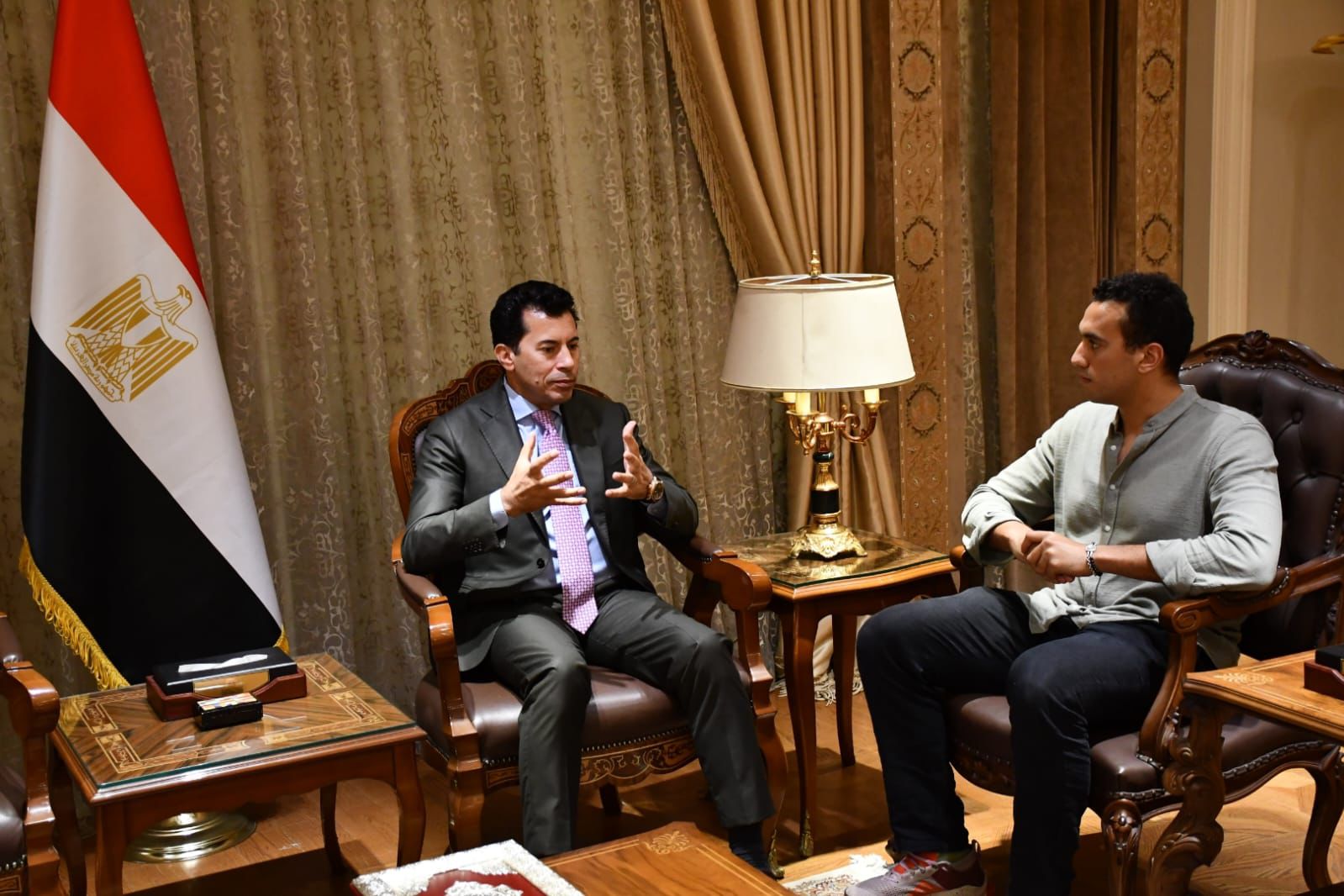 وزير الشباب والرياضة يلتقي البطل الأولمبي أحمد الجندي ويبحث استعداداته للمرحلة المقبلة
