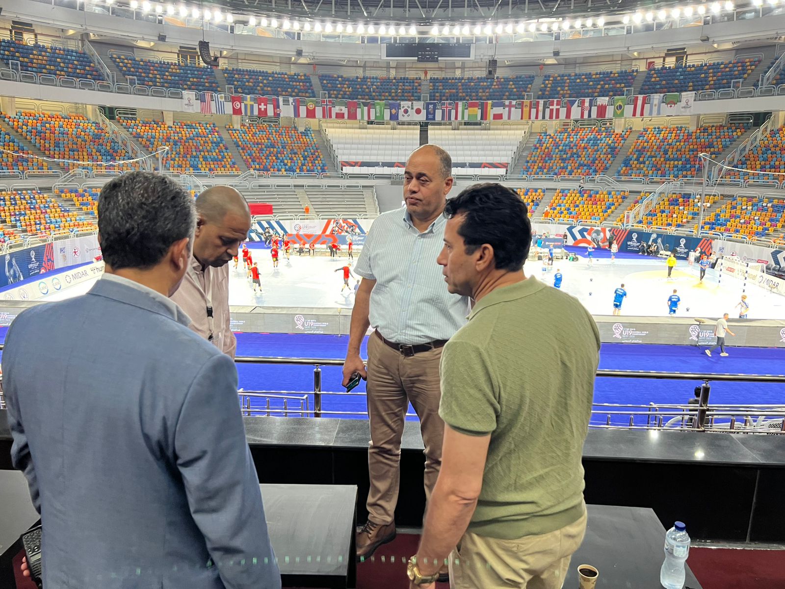 وخلال جولته، اطمأن وزير الشباب والرياضة على انتظام سير المباريات، وجاهزية الصالة من كافة الجوانب التنظيمية والفنية، بما يشمل مناطق استقبال الفرق، غرف الملابس، المدرجات، المنظومة الأمنية والطبية، وكذلك الخدمات المقدمة للجماهير ووسائل الإعلام.
