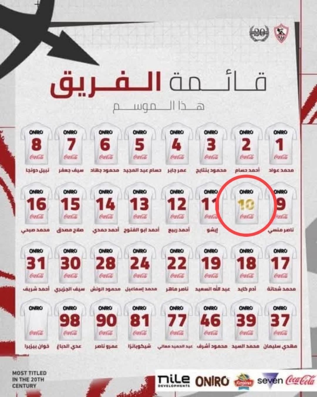 وقبل انطلاق ضربة البداية، كشف الحساب الرسمي لنادي الزمالك عبر موقع "فيسبوك" عن قائمة أرقام قمصان لاعبي الفريق للموسم الجديد، حيث لفتت الأنظار خطوة إدارة النادي بحجب القميص رقم 10 تكريمًا لأسطورة القلعة البيضاء محمود عبد الرازق "شيكابالا"، الذي أسدل الستار على مسيرته الكروية بنهاية الموسم الماضي.
